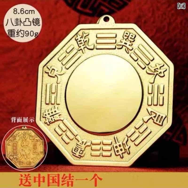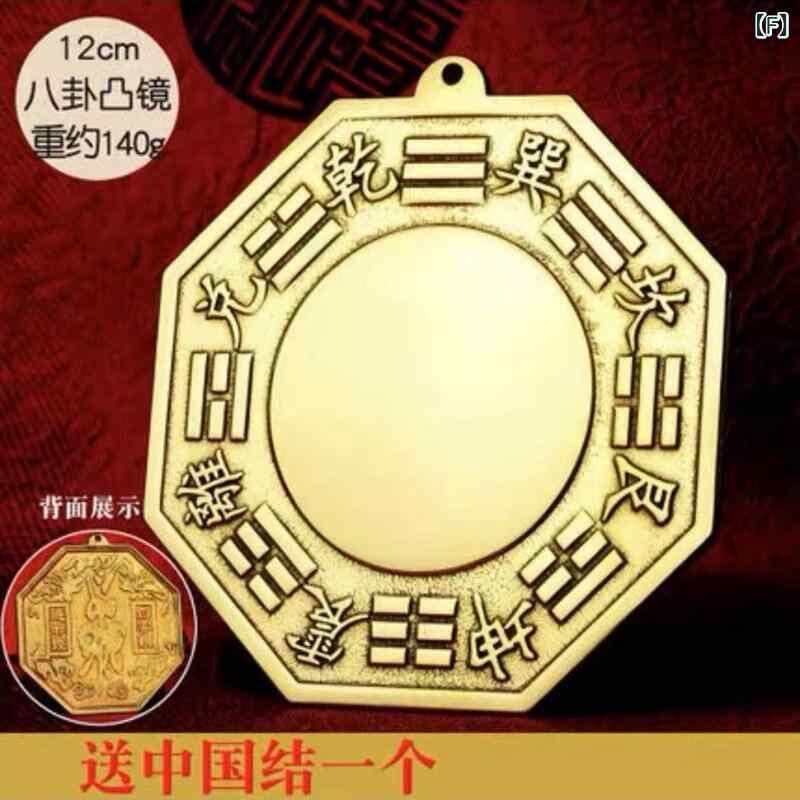 八卦鏡 総真鍮製 真鍮ミラー 凸面鏡 凹面鏡 九宮 太極 風水 開運 縁起物 吉祥 家庭用 玄関 リビング 店舗 オフィス 壁掛け 置物 中華風