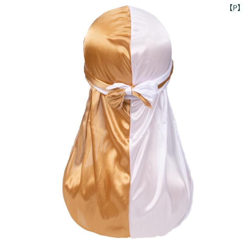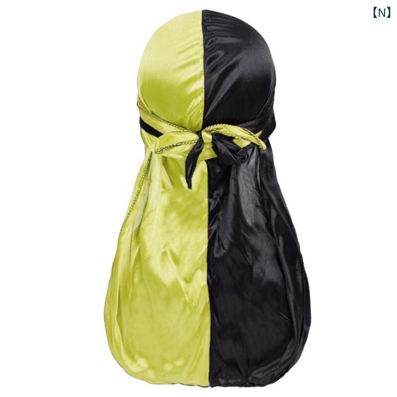 ドゥーラグ ユニセックス 海賊帽 ロングテール サテン シルク調 伸縮性 ヘアケア バイカラー ポリエステル UVカット 通気性 ヒップホップ ストリート