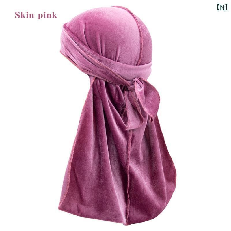 海賊帽 ベルベット ロングテール バンダナキャップ スカルキャップ ターバン風 つば無し 丸型 高級感 ソフトな肌触り 光沢感 オールシーズン 普段使い ストリートファッション ブラック ワインレッド ネイビー 多色展開