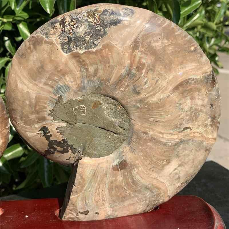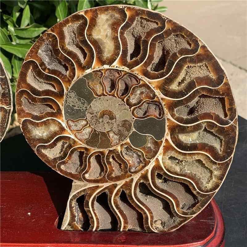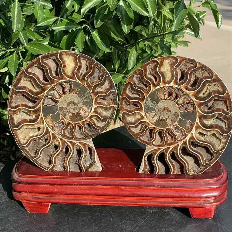 置物 天然 マダガスカル アンモナイト 化石 スライス 巻き貝 2枚組 水晶 宝石 研磨 高品質 インテリア 飾り オブジェ ディスプレイ コレクション モダン ギフト 記念品