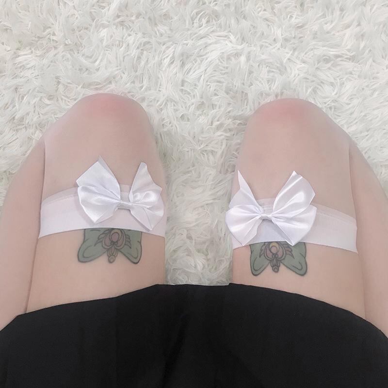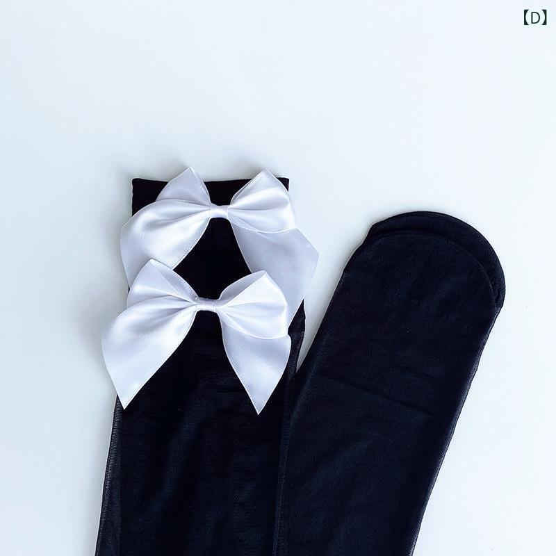 サイハイソックス レディース ロリータ かわいい 日系 オーバーニー ブラック ホワイト リボン 美脚効果 ロング丈 弾力性 シームレス 無地