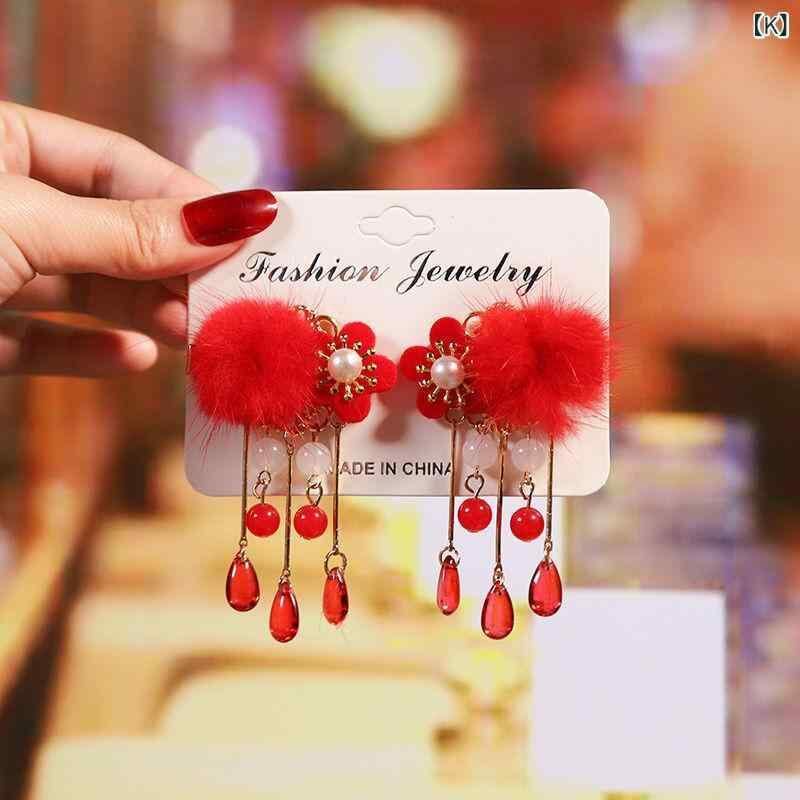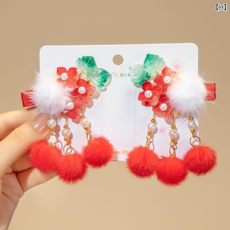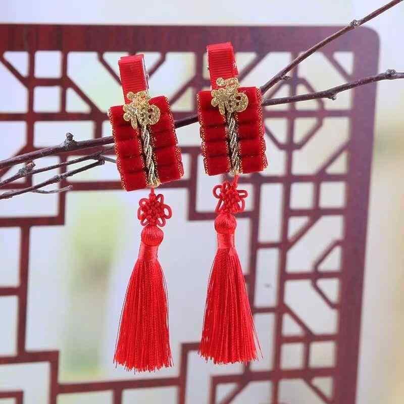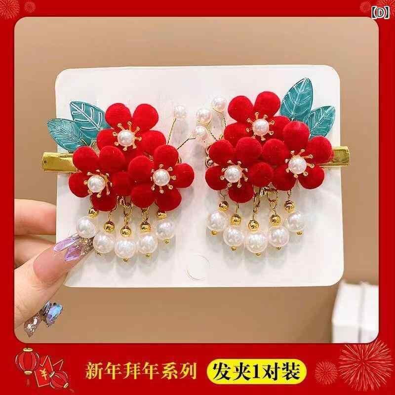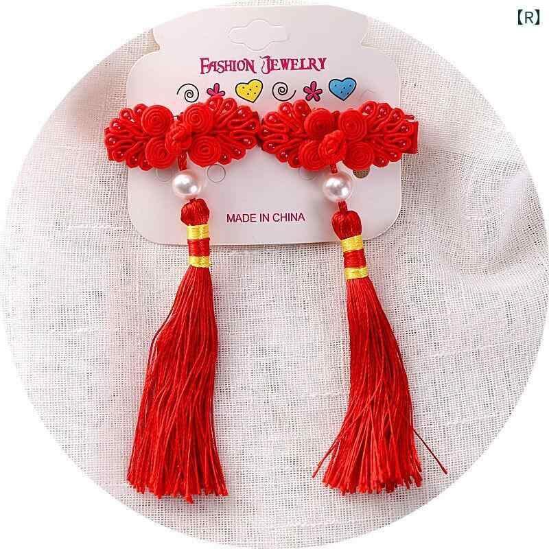 髪飾り キッズ 女の子 お正月 新年 お祝い 晴れ着 華やか 和風 中華風 漢服 唐装 揺れる タッセル フリンジ 刺繍 ヘアクリップ ヘアピン 布製