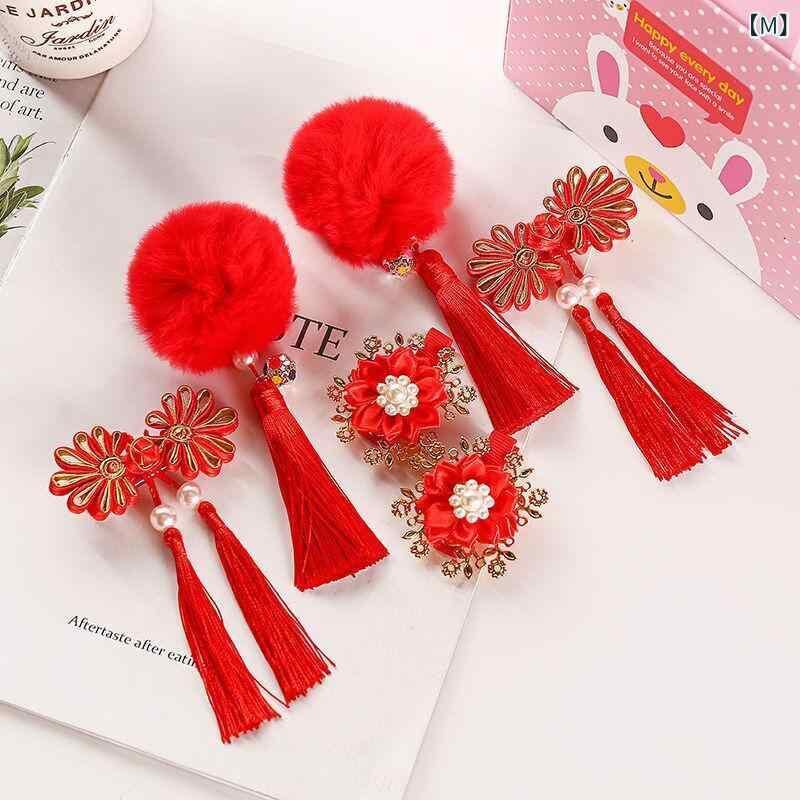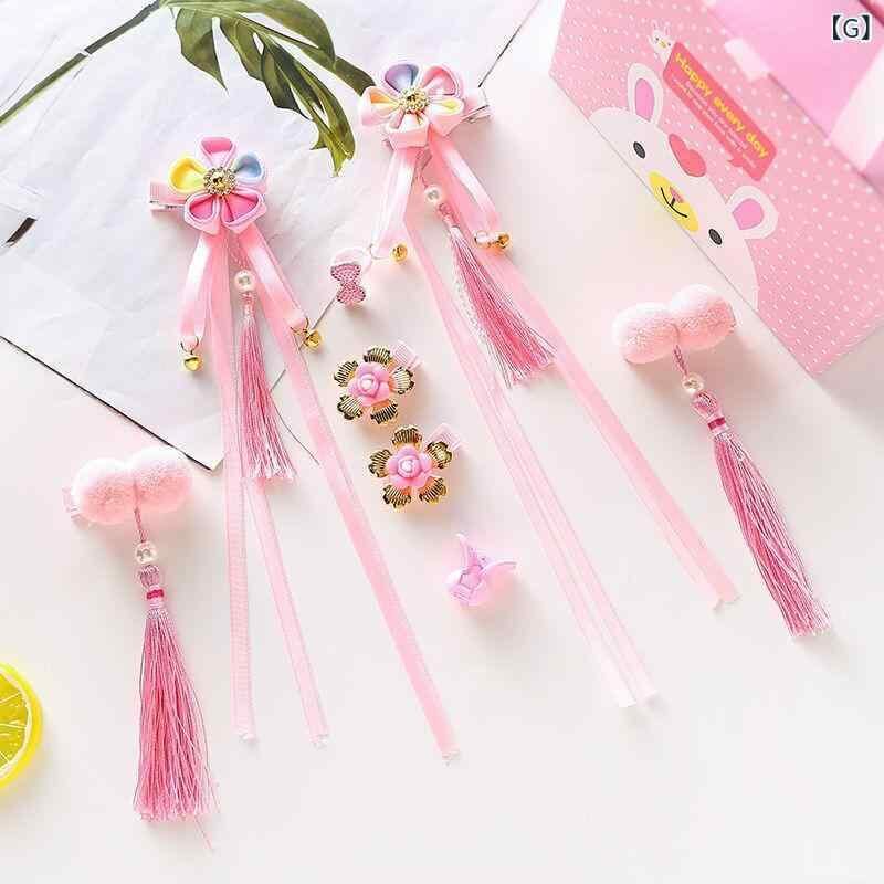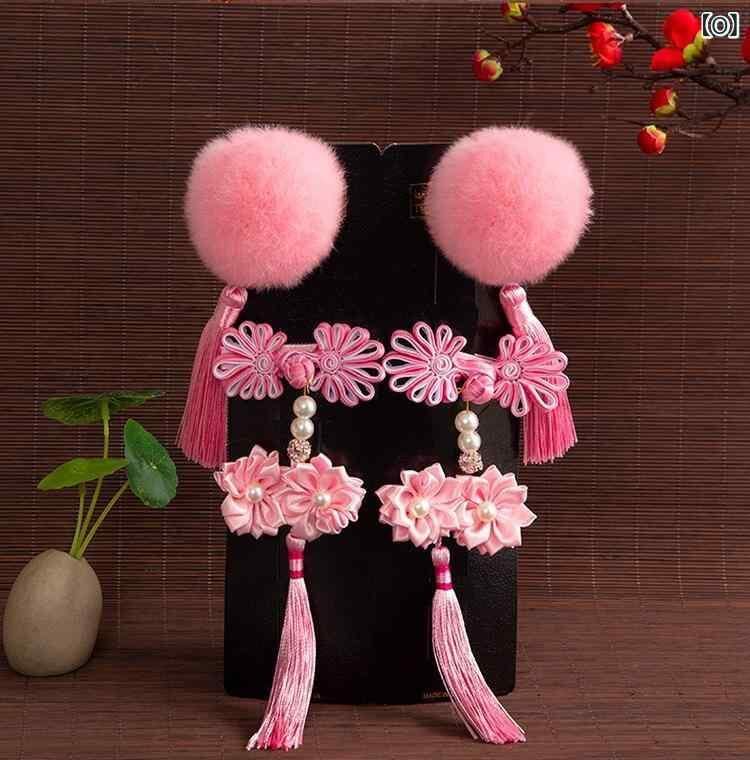 髪飾り 女の子 和風 古風 青花柄 花柄 鈴 タッセル ポンポン 布製 手作り 七五三 お正月 浴衣 着物 和装 中華風 かわいい ヘアアクセサリー キッズ ガールズ