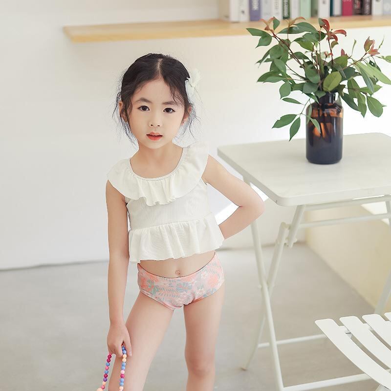 水着 キッズ 女の子 セパレート ビキニ かわいい フリル ティアード 夏物 速乾 ポリエステル素材 プール 海水浴 リゾート用 ホワイト オレンジ 三角パンツ