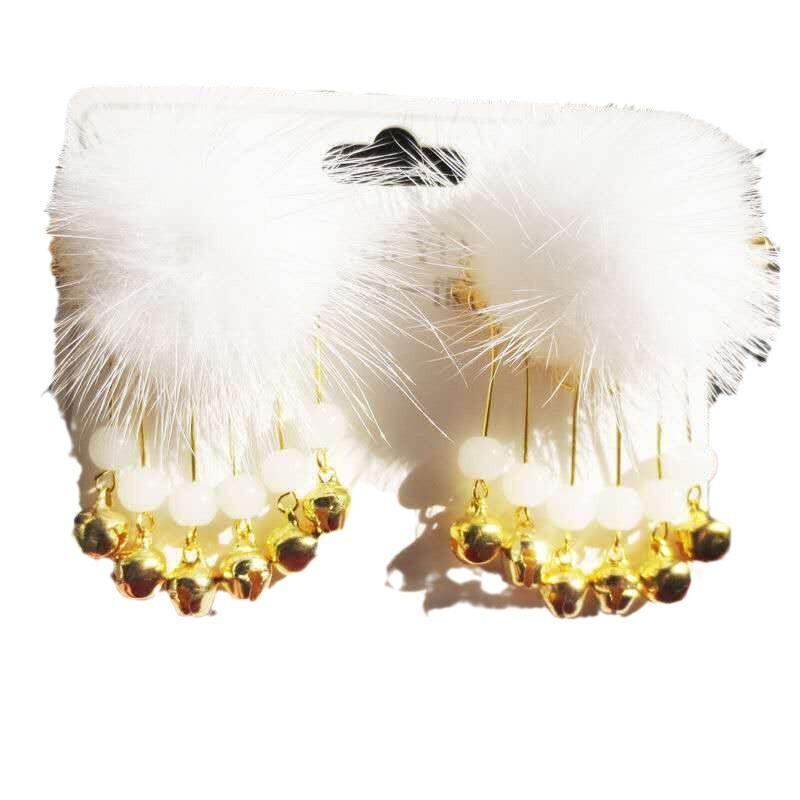 ヘアクリップ キッズ 女の子 ポンポン 鈴 タッセル フェイクファー 金色飾り レトロ調 かわいい ふわふわ 華やか 髪飾り プリンセス イベント 発表会 浴衣 七五三