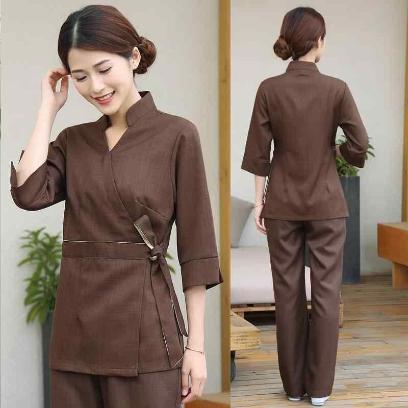 制服 レディース エステユニフォーム マッサージウェア 足浴 足療 保健 美容師 セラピスト 施術着 上下セット コットンブレンド 綿混 吸湿速乾 通気性 快適な着心地 業務用 作業服