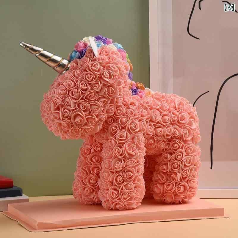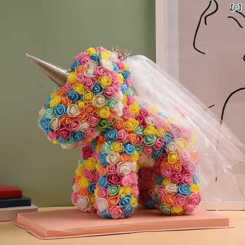 オブジェ ユニコーン 造花 ローズ 薔薇 リアル PE素材 バレンタイン ギフト プレゼント 結婚式 ウェディング インテリア 部屋飾り 撮影小物 ディスプレイ