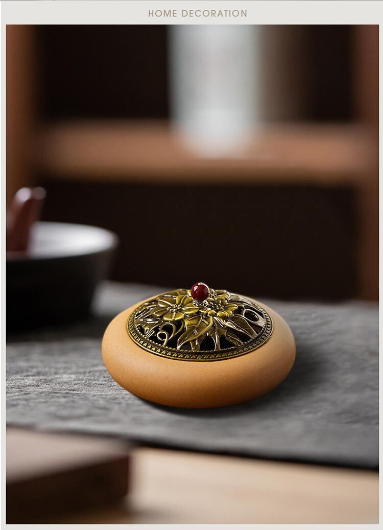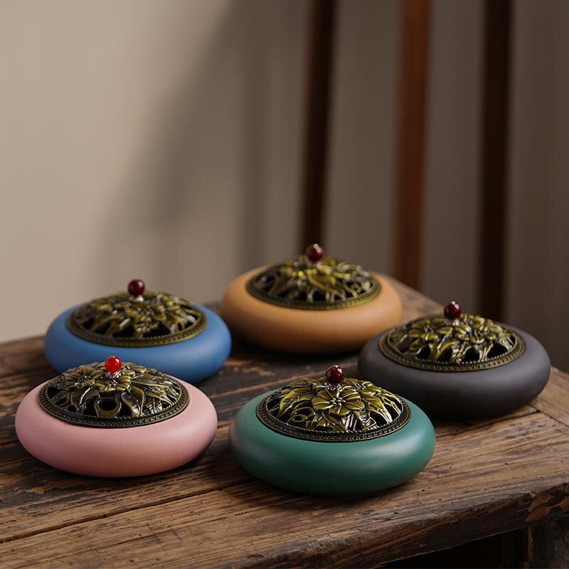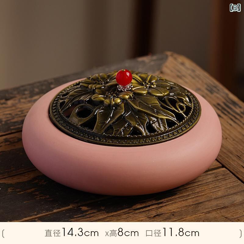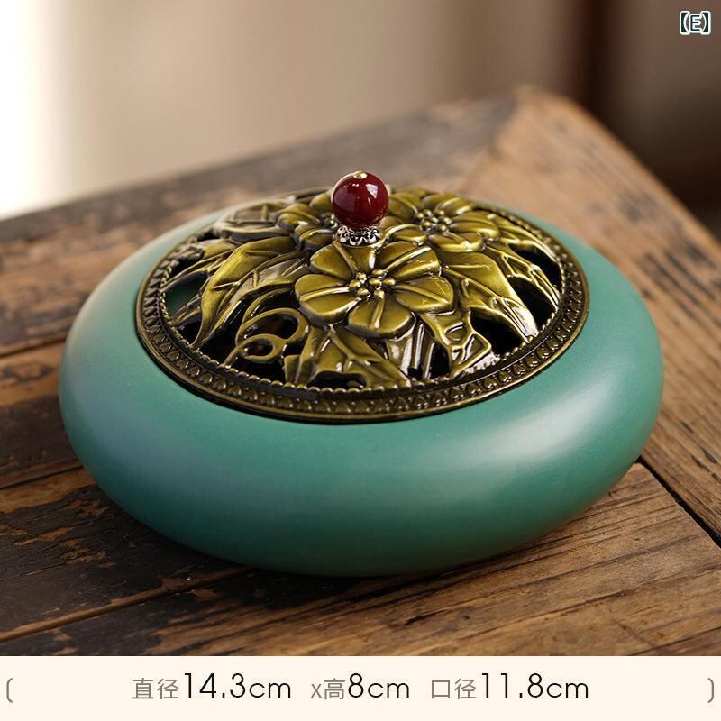蚊取り線香炉 大型 陶器製 蓋付き 防火 お香立て アロマ香炉 レトロ調 アンティーク風 おしゃれ インテリア置物 室内用 家庭用 リビング 玄関 寝室