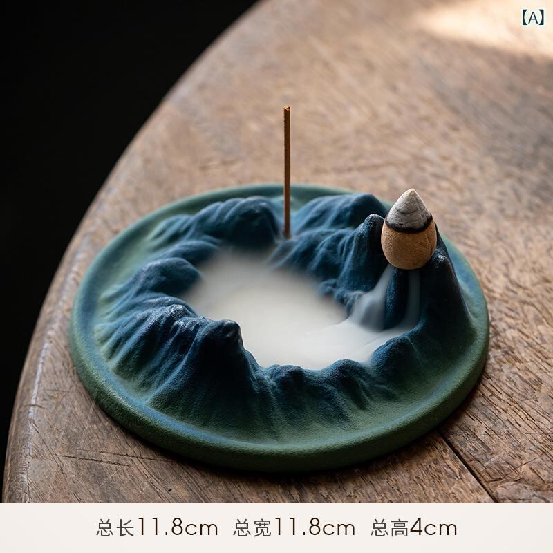 香炉 お香立て 陶器 陶磁器 セラミック 千里江山 線香立て 逆流香炉 流川香炉 室内用 家庭用 禅風 新中式スタイル モダン和風 書斎 茶室 リビング 玄関 置物 インテリア オブジェ 癒し アロマ