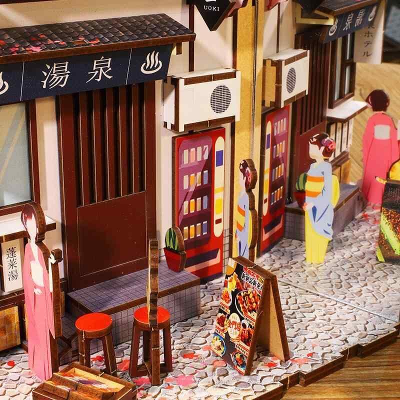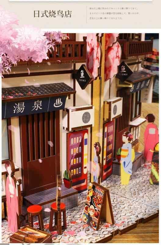 DIYミニチュアハウス 敦煌の夢 桜の街 手作り 組み立て式 3D立体 木製 本立て 模型 インテリア雑貨 デスクトップ装飾 大人の知育玩具 ホビーキット
