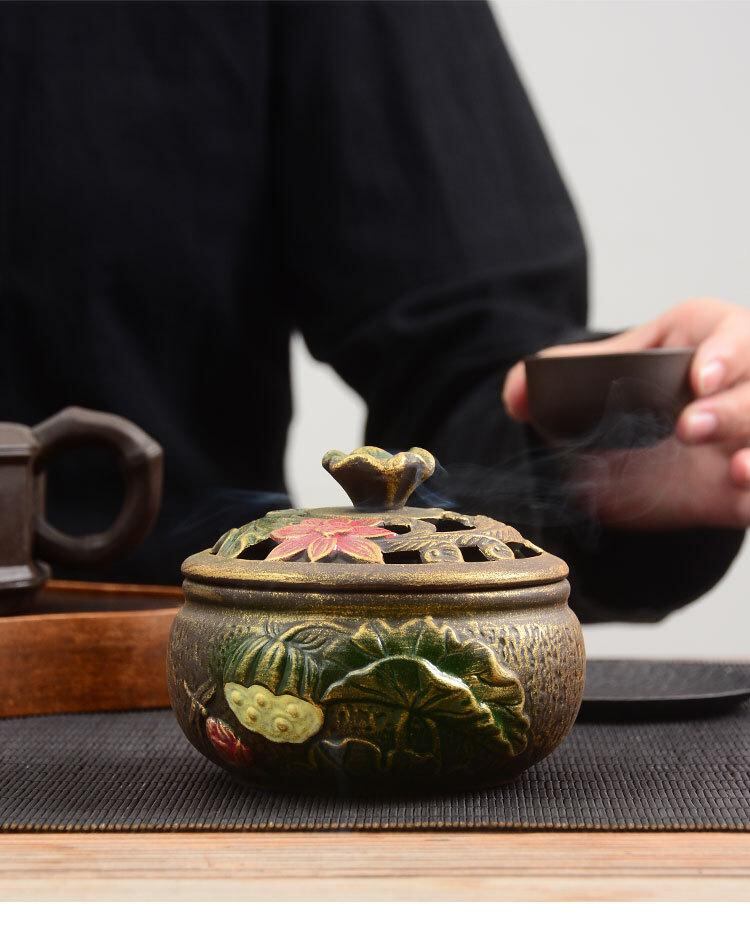 香炉 蓮 ロータス 陶器 紫砂陶器 家庭用 室内 空気浄化 白檀 沈香 コーン香 スティック香 渦巻き香 禅風 和風 アジアン インテリア 飾り 癒やし 瞑想 リビング 寝室 玄関 消臭