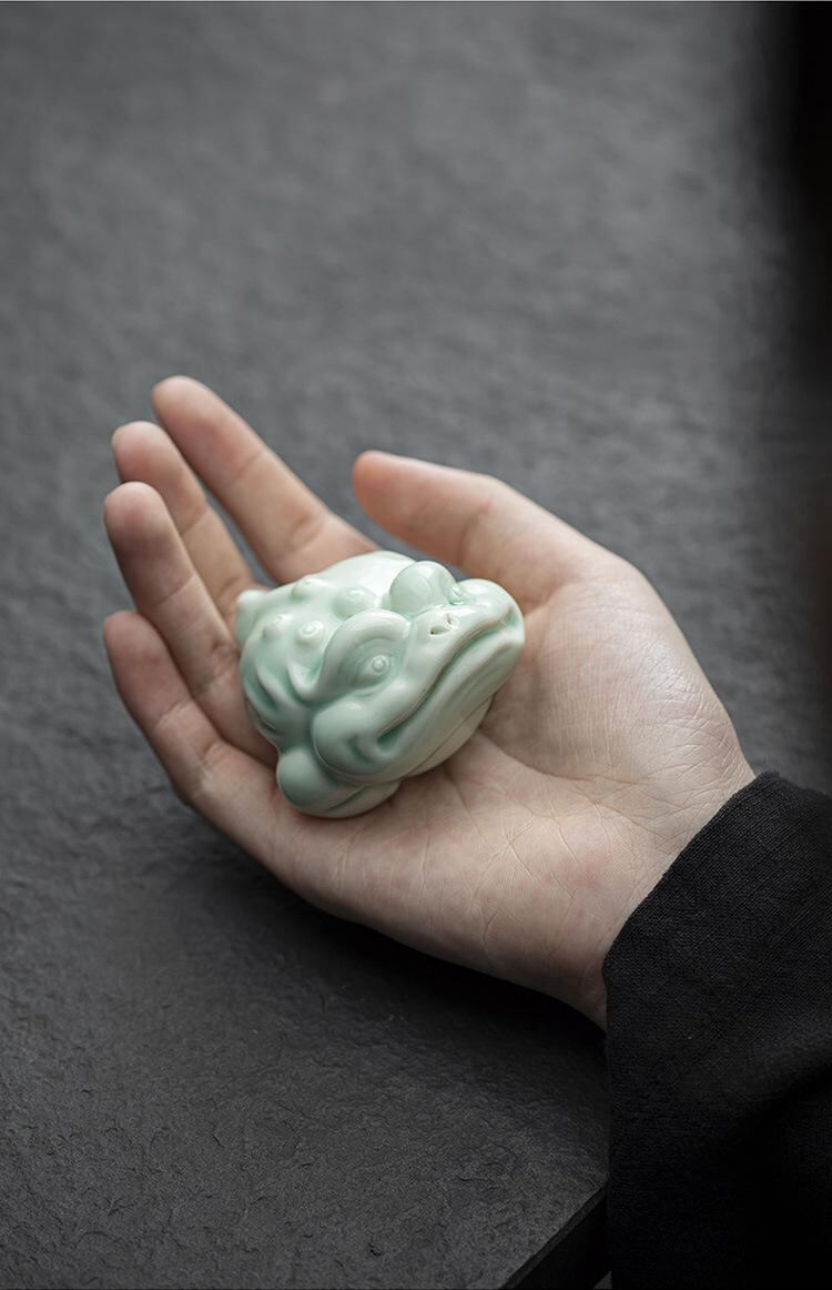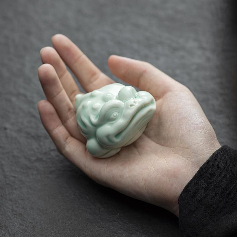 カエル 置物 ミニ 陶器製 かわいい 金蟾 ユニーク 茶寵 茶器飾り 卓上 デスク インテリア おしゃれ 青磁 白磁 茶道具 蓋置き ペーパーウェイト 縁起物
