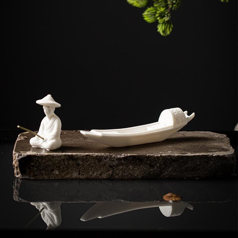 置物 陶磁器 白磁 紫砂 古代漁船 精巧 小型船 ミニチュア 造景 卓上 人工山 流水 水槽 アクアリウム 盆栽 箱庭 テラリウム 飾り オブジェ インテリア 中華風 和モダン 観賞用 ディスプレイ