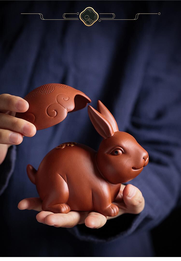 茶こし かわいい 兎 うさぎ 紫砂陶製 一体型 茶漉し おしゃれ 茶道具 茶器 卓上飾り 置物 インテリア 工芸品 茶寵 お茶用品 和モダン 茶色 紫色