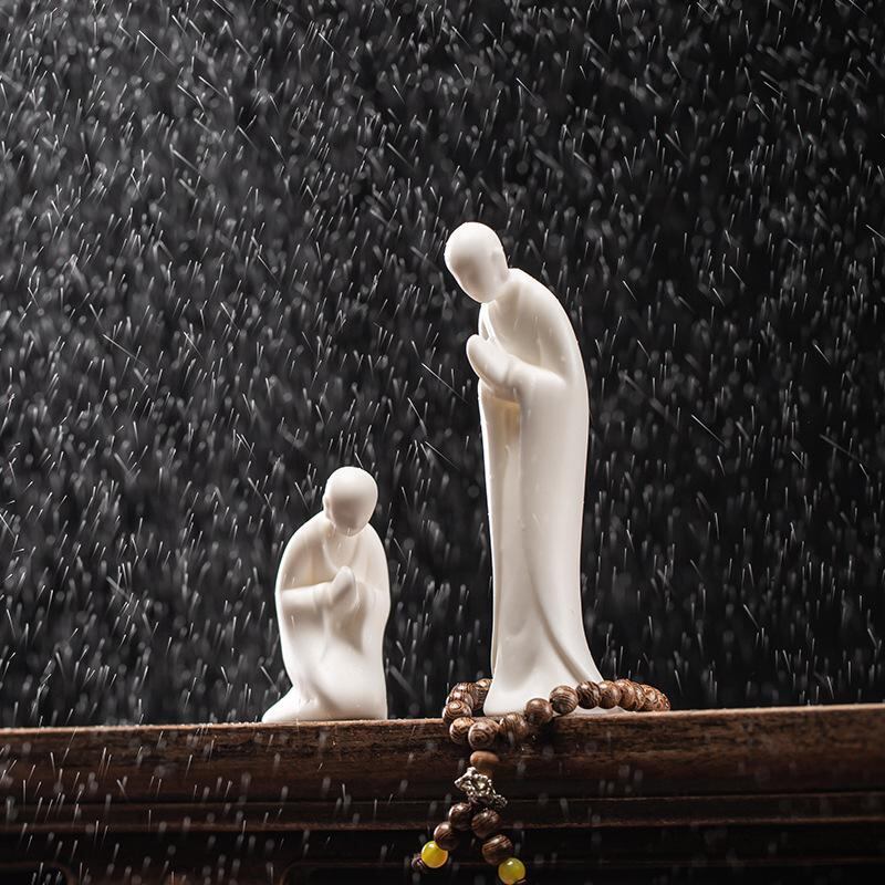 置物 陶磁器 禅風 人物 白磁 僧侶 フィギュア リビング 茶室 庭園 水槽 アクアリウム インテリア 装飾 オブジェ 和モダン 癒し 瞑想 玄関 書斎 卓上飾り 静穏