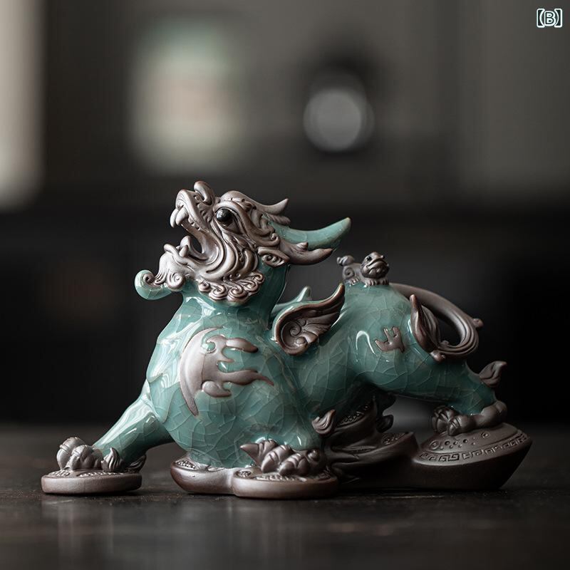 置物 貔貅 ペア 陶器製 中華風 オブジェ リビング 玄関 オフィス デスク 卓上 飾り棚 金運招来 縁起物 開運 魔除け おしゃれ インテリア セラミック 装飾品