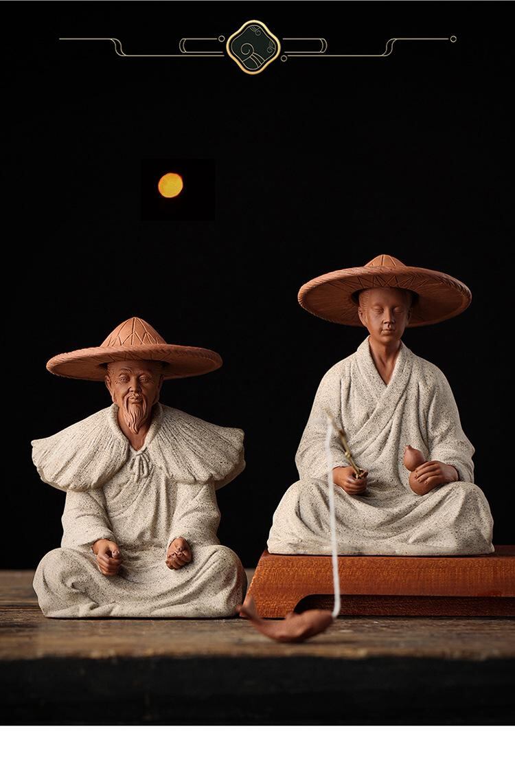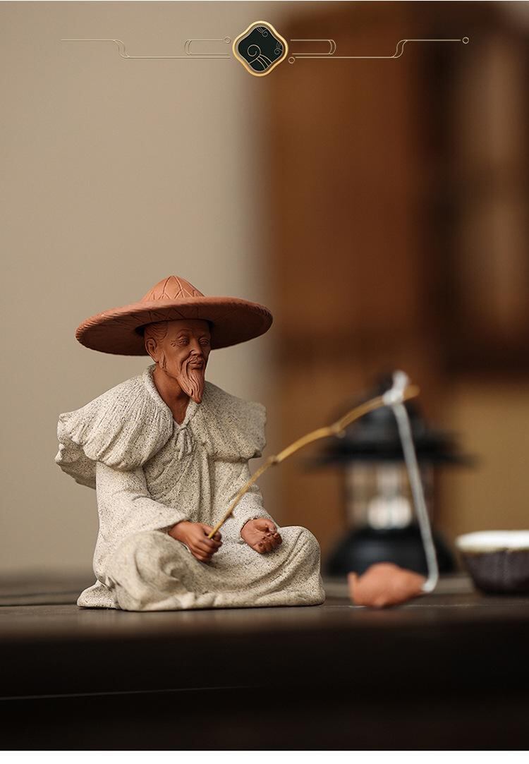 置物 姜太公 姜子牙 釣り人 紫砂陶器 フィギュア 禅風 オブジェ 水槽 盆栽 築山 ミニチュアガーデン 景観装飾 室内 インテリア