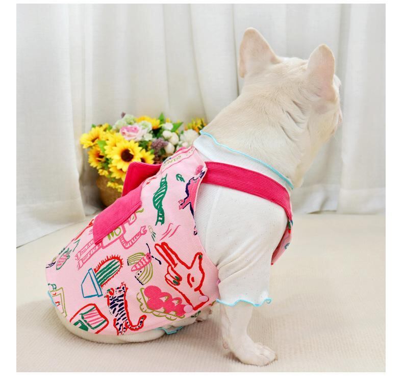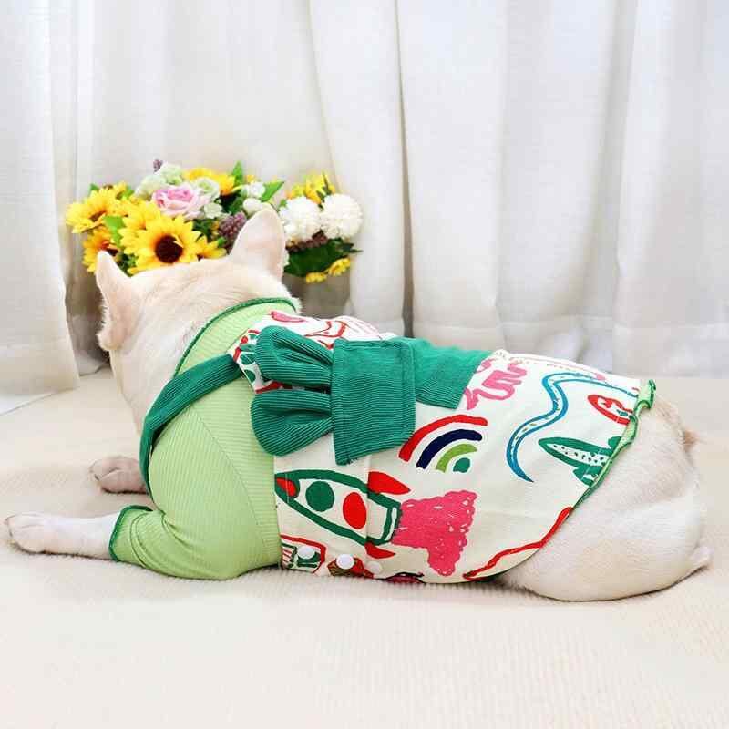 犬用スカート サロペット ジャンパースカート オーバーオール 落書き柄 グラフィティ柄 フレンチブルドッグ ブルドッグ パグ ぽっちゃり犬 大型犬向け 秋冬 綿 コットン素材 あったか グリーン系 ピンク系