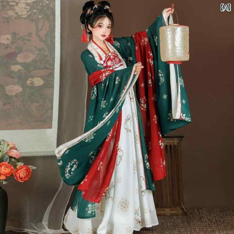 漢服 レディース 大きいサイズ 唐代風 斉胸襦裙 復元風 シフォン ポリエステル 日常使い 仙女風 エレガント 夏用 4点セット ダシュウシャン リーイー バーポージュン ピーボー 古風衣装