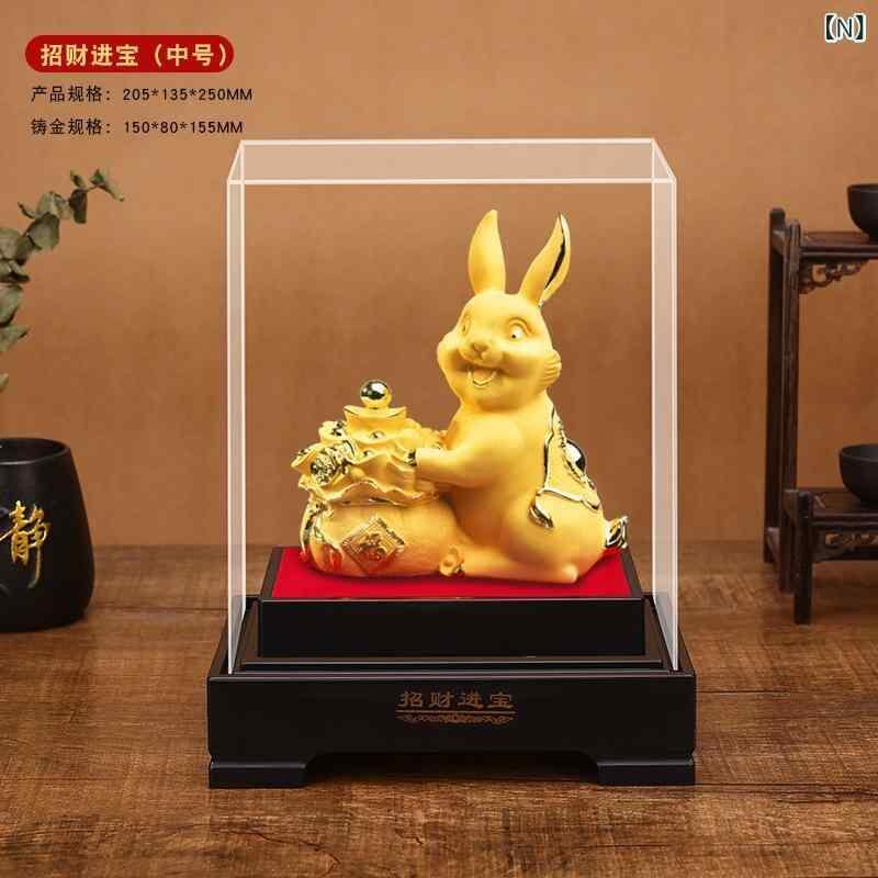 置物 十二支 卯 金兎 絨沙金 金メッキ 工芸品 ギフト 贈り物 招財 開運 ラッキーアイテム 縁起物 風水 玄関 リビング インテリア オブジェ 高級感