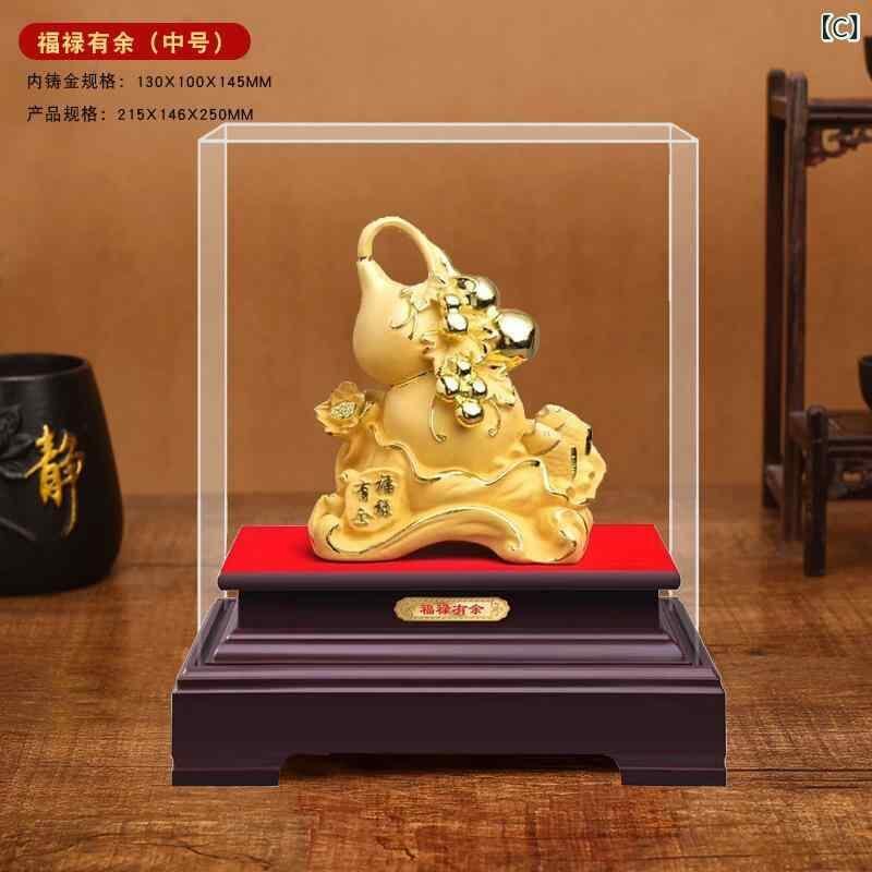 置物 絨沙金 ひょうたん 中国風 福禄 開運 招財 金運アップ 商売繁盛 縁起物 贈答品 記念品 企業向け 法人ギフト 開店祝い 新築祝い インテリア オフィス リビング 装飾