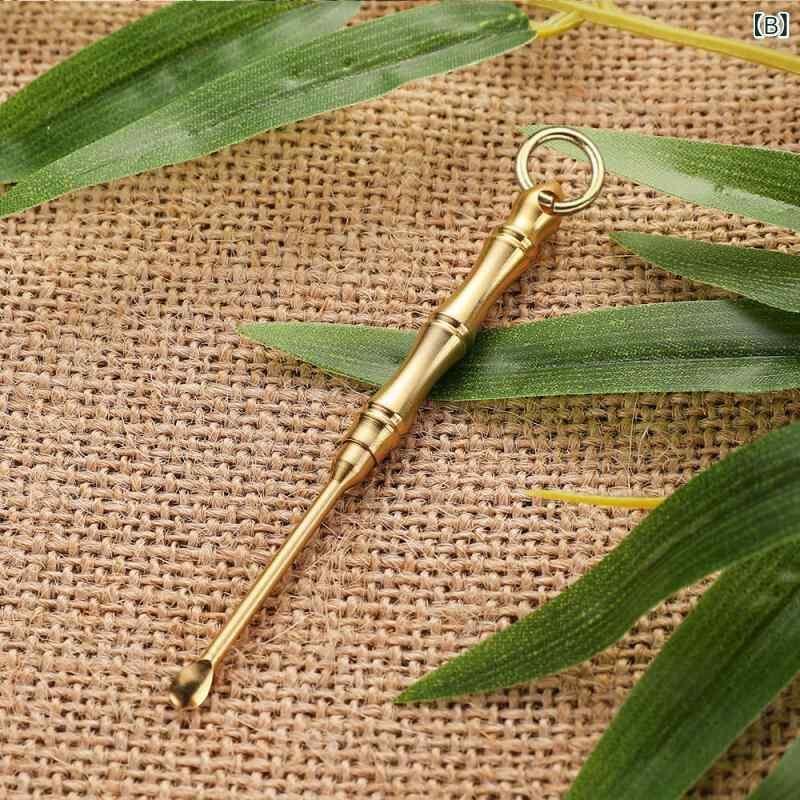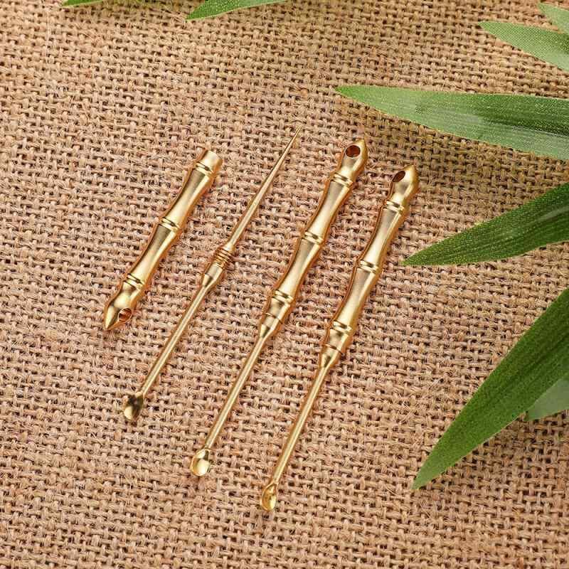 耳かき 真鍮製 竹節デザイン 爪楊枝一体型 2WAY 多機能 携帯用 ポータブル 耳掃除 ツール 耳ケア用品 日常使い 旅行 出張 アウトドア 衛生用品 高級感