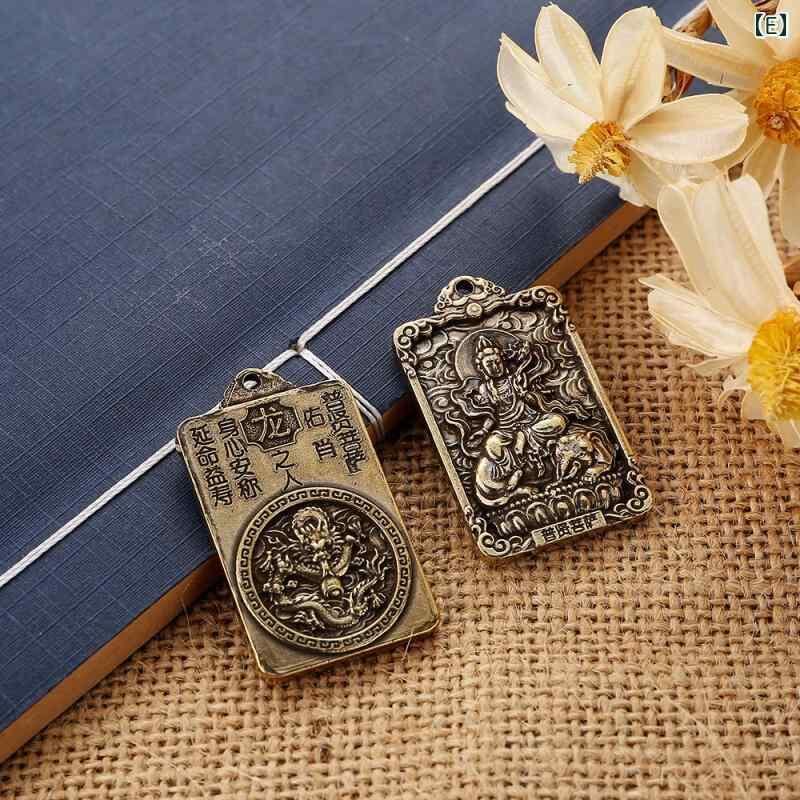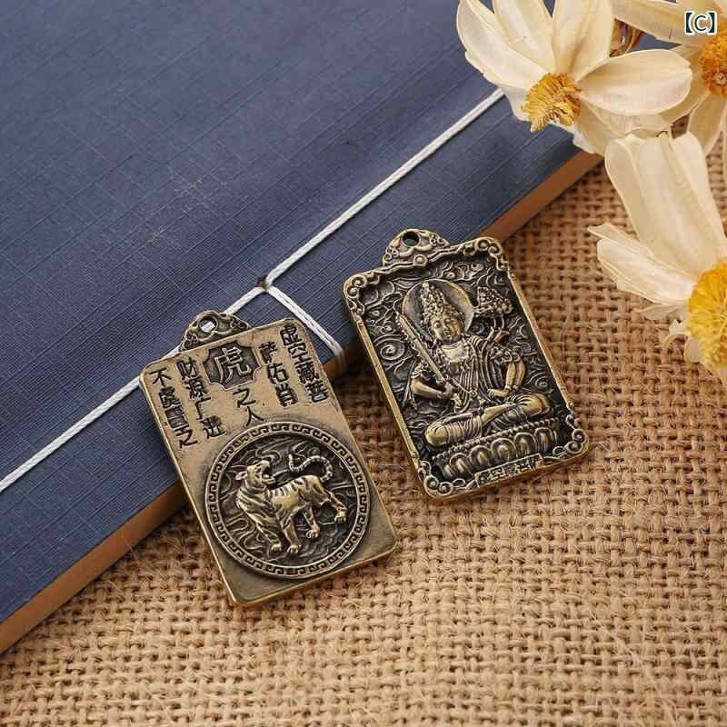 キーホルダー チャーム ペンダント 正方形 干支 守護神 守護仏 真鍮 無垢 重厚感 開運 お守り ラッキーアイテム 縁起物 記念品 ギフト プレゼント 携帯用