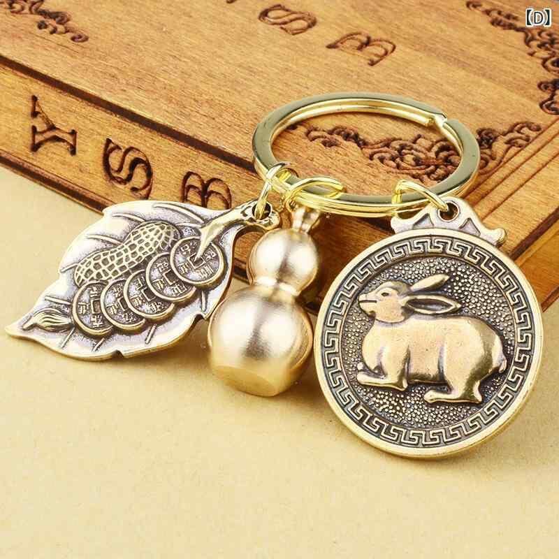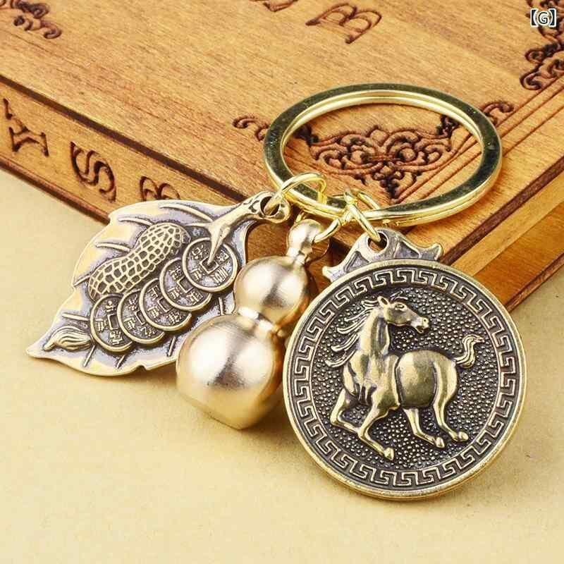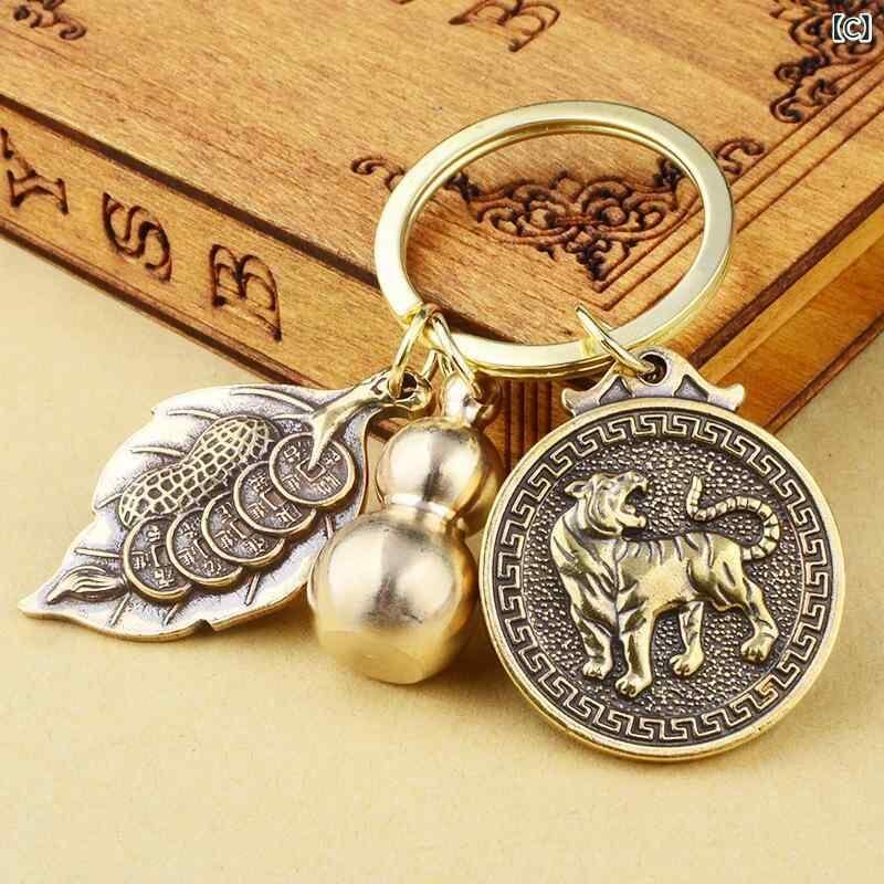 キーホルダー 真鍮製 一葉 金運招来 十二支 干支 福 縁起物 幸運 開運 お守り チャーム バッグチャーム 車内アクセサリー インテリア飾り ひょうたん 金属製 ペンダント ストラップ ラッキーアイテム ギフト 贈り物