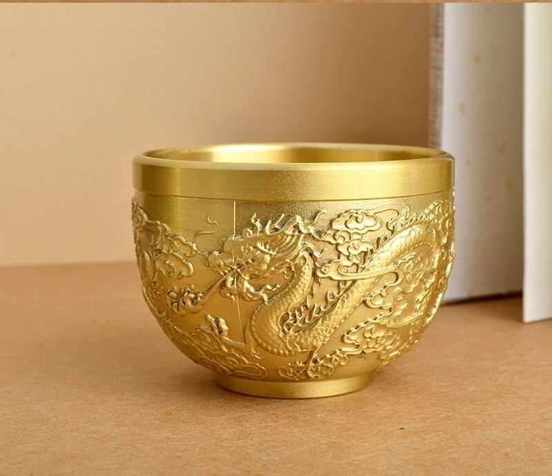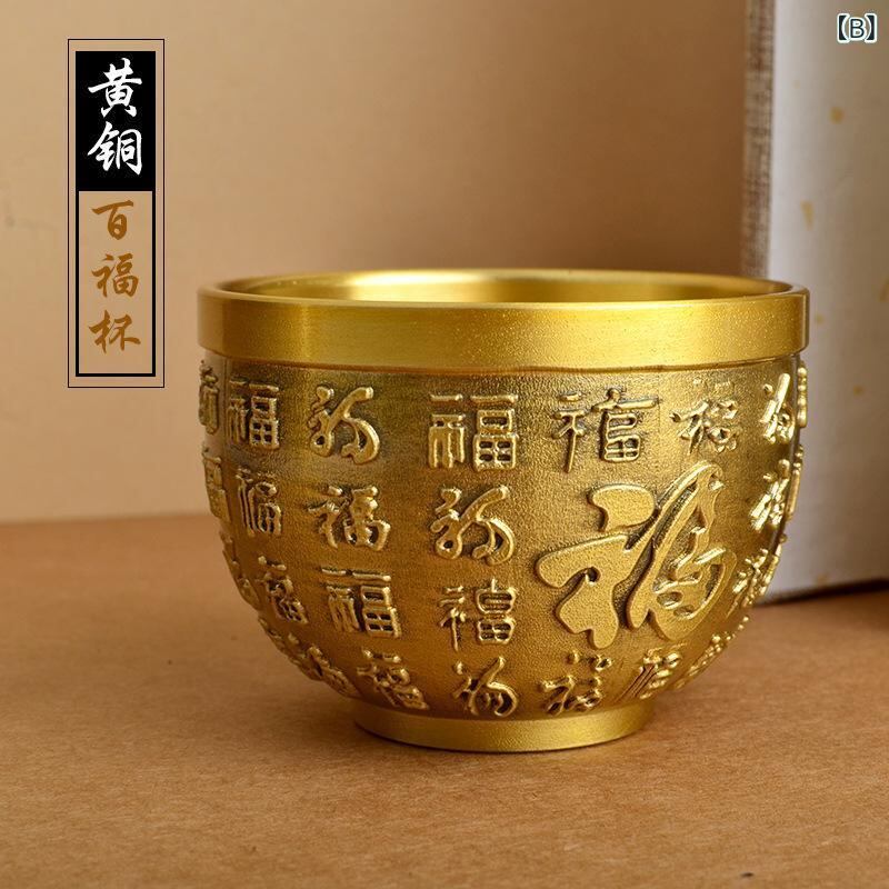 置物 真鍮 ゴールド 中国風 百福 龍鳳 浮彫 酒器 茶器 カップ オフィス デスク 書斎 卓上 インテリア オブジェ 飾り 縁起物 記念品 贈答品 プレゼント
