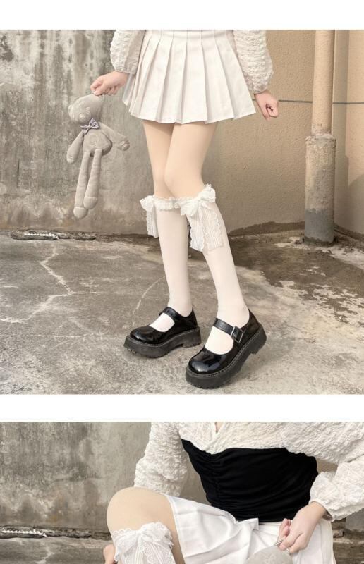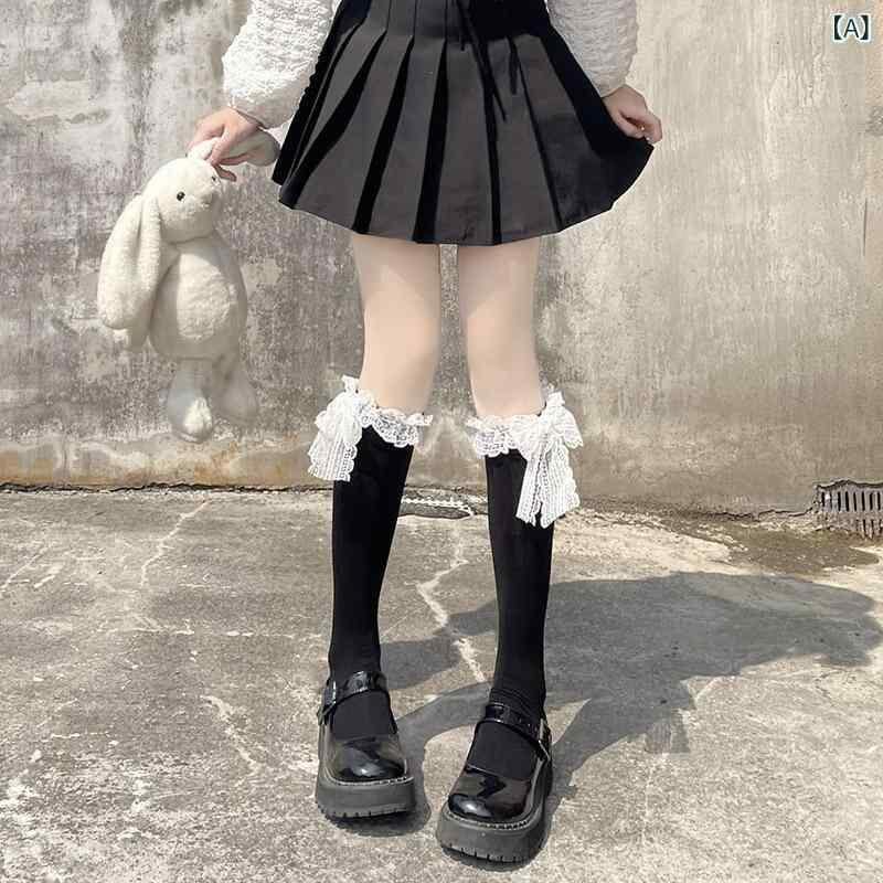 ソックス レディース レース リボン フリル レースアップ かわいい 日系 JK ショート丈 ミドル丈 ロング丈 ロリータファッション スクール 制服 ベロア調 薄手 ガーリー フェミニン