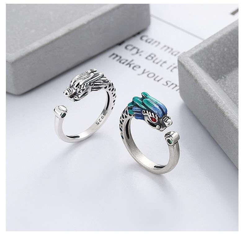 リング 男女兼用 龍 フェニックス 中国風 民族風 レトロ ヴィンテージ 個性的 ユニーク 高級感 スタイリッシュ 銅製 シルバーカラー フリーサイズ オープンリング