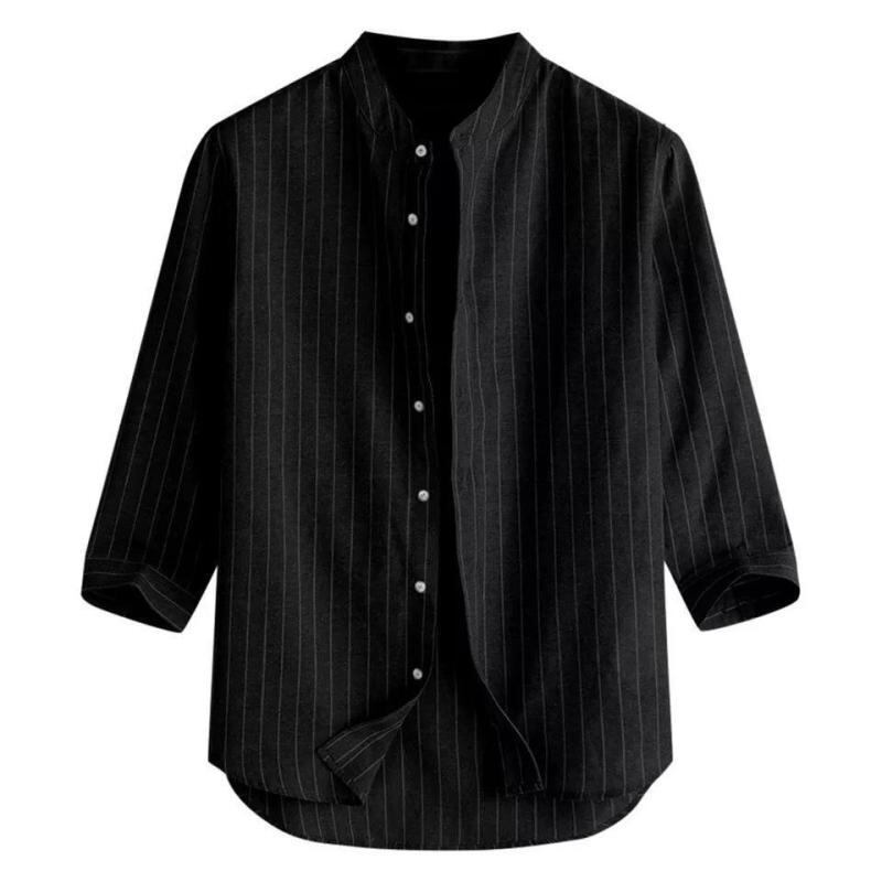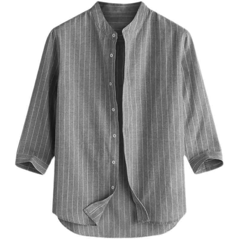シャツ メンズ 麻 リネン スタンドカラー 前開き 七分袖 カジュアルシャツ 韓国風 通気性 涼しい 速乾 ゆったり ビッグシルエット シワになりにくい