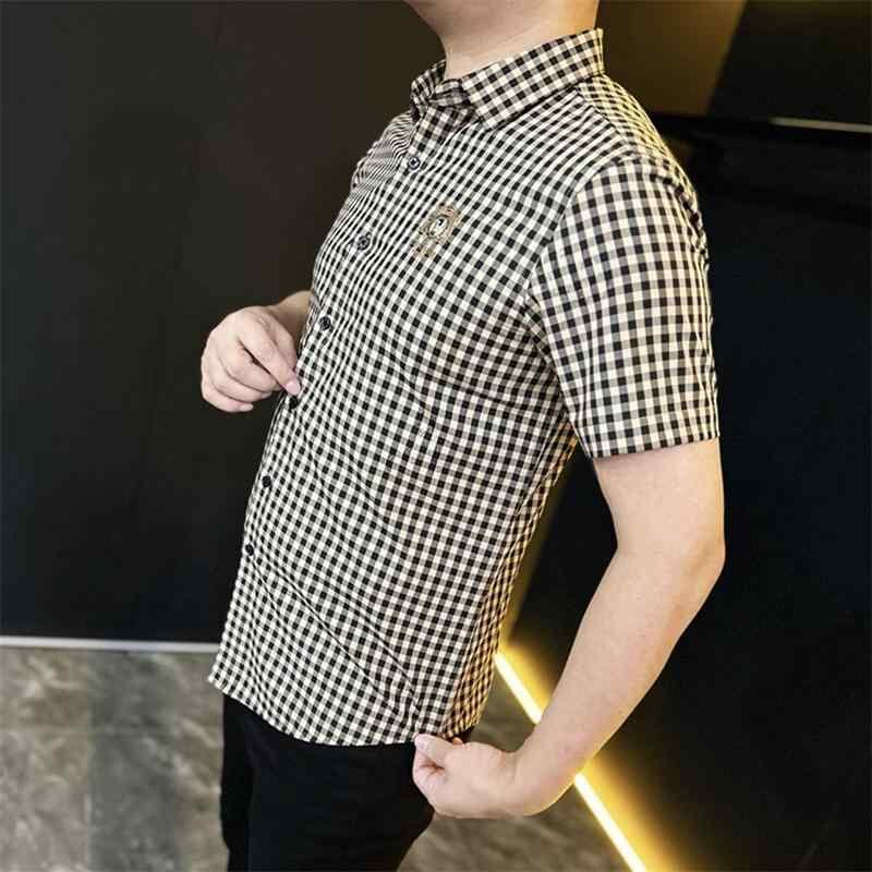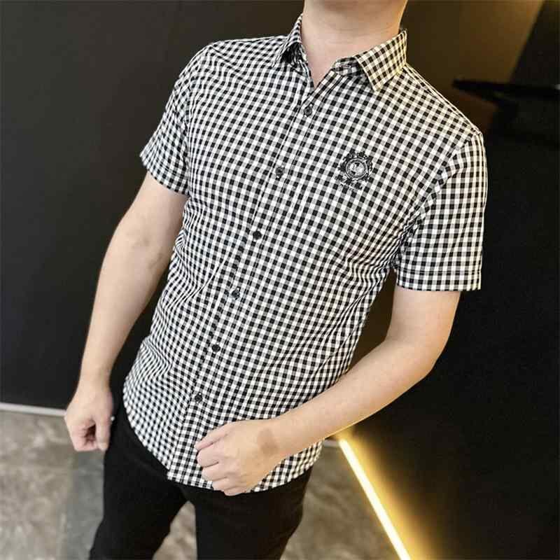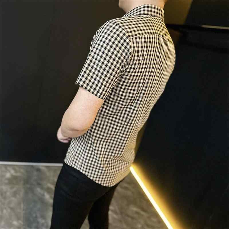 シャツ メンズ 半袖 夏用 ビジネス カジュアル オフィススタイル シンプルデザイン 薄手 スリムフィット 通気性 コットン シルケット加工 高級感 格子柄 チェック柄 通勤 普段使い オフィスカジュアル 黒 白 黄色