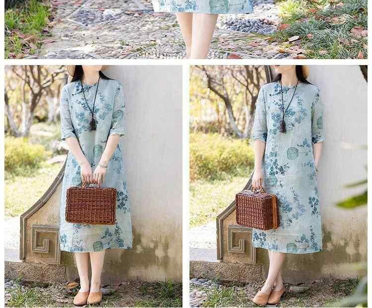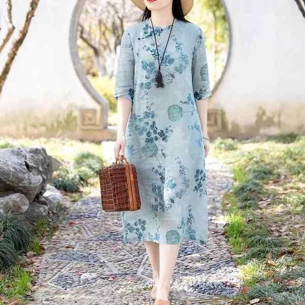 ・主な素材: ポリエステル 80~90%・カテゴリ: ワンピース・デザイン: プルオーバー・丈: ミディ丈・スカートシルエット: Aライン・ネックライン: クルーネック・袖タイプ: レギュラー・袖丈: 五分袖・ウエスト: ハイウエスト・スタイル: レトロ、チャイナ風・カラー展開: 画像色・サイズ展開: S, M, L, XL, 2XL, 3XL