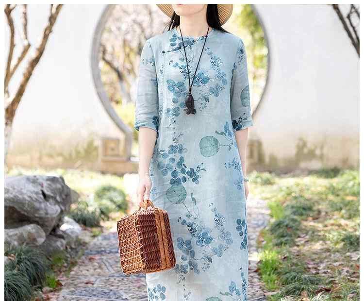 ワンピース レディース チャイナドレス 旗袍 Aライン ロング丈 ミモレ丈 レトロ クラシカル ヴィンテージ エレガント 上品 ゆったり リラックスフィット 体型カバー 細見え効果 大きいサイズ 五分袖 ラウンドネック ハイウエスト ポリエステル