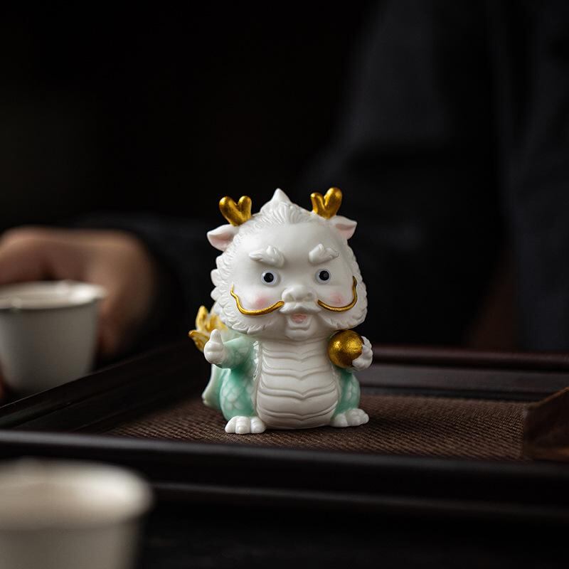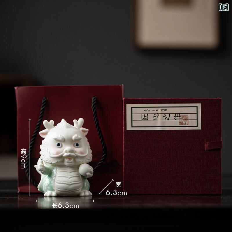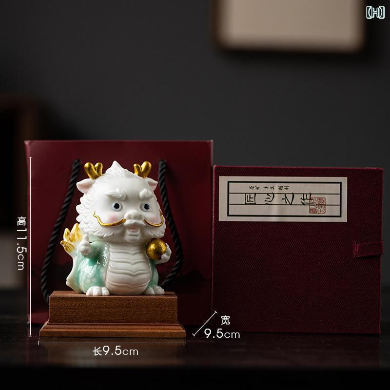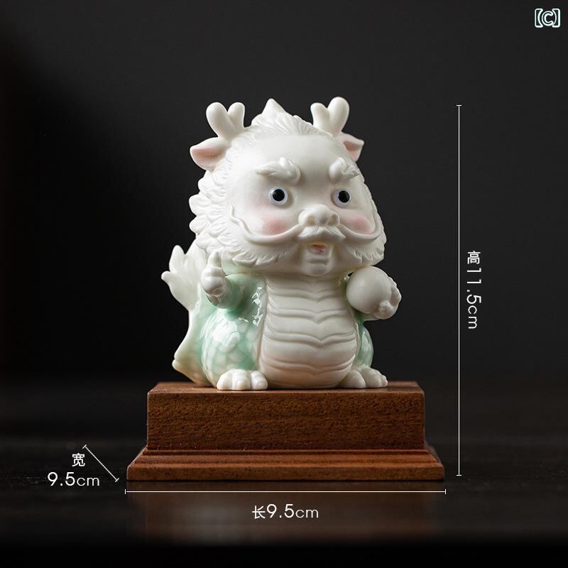 置物 神獣 青龍 ドラゴン 陶器製 中国風 開運 金運招福 縁起物 かわいい マスコット フィギュア リビング 玄関 デスク オフィス インテリア装飾 プレゼント 贈り物