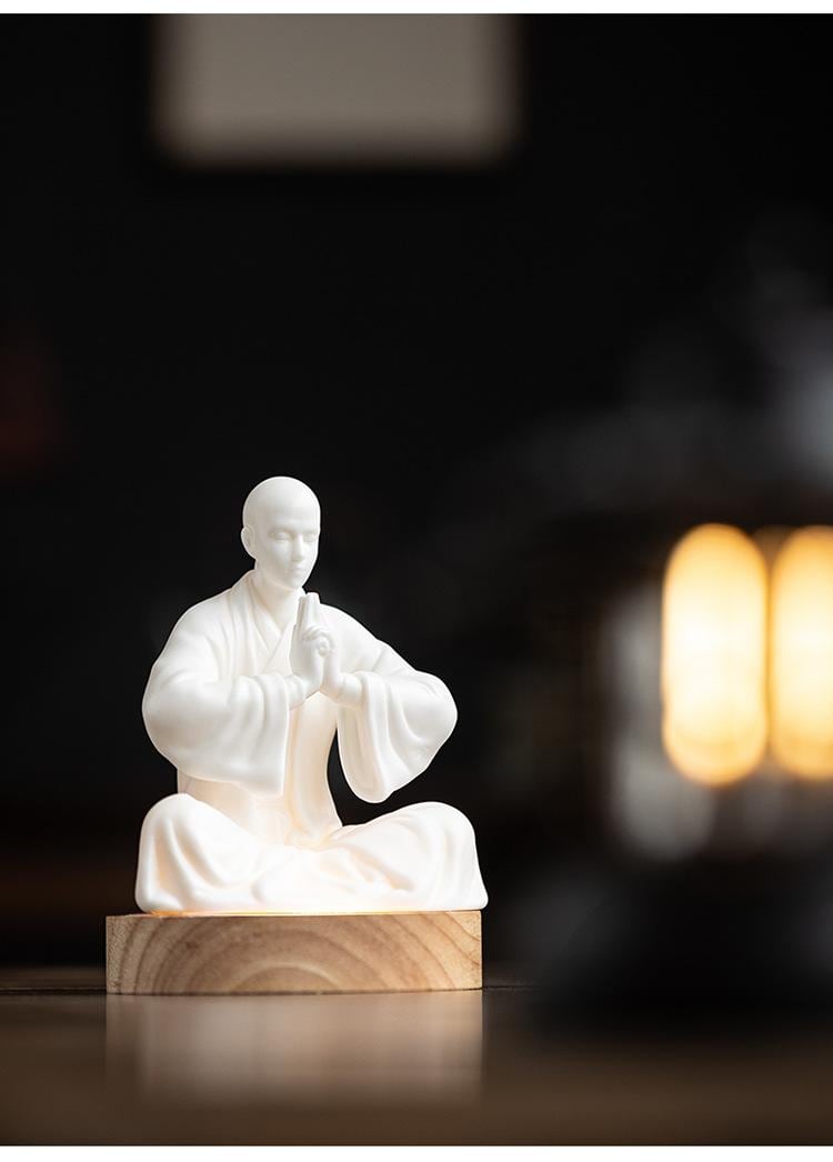置物 白磁 小坊主 禅スタイル 人物像 陶器製 インテリア オブジェ リビング 和室 茶室 卓上 デスク ディスプレイ 飾り棚 静寂 癒し 高級感 モダン和風
