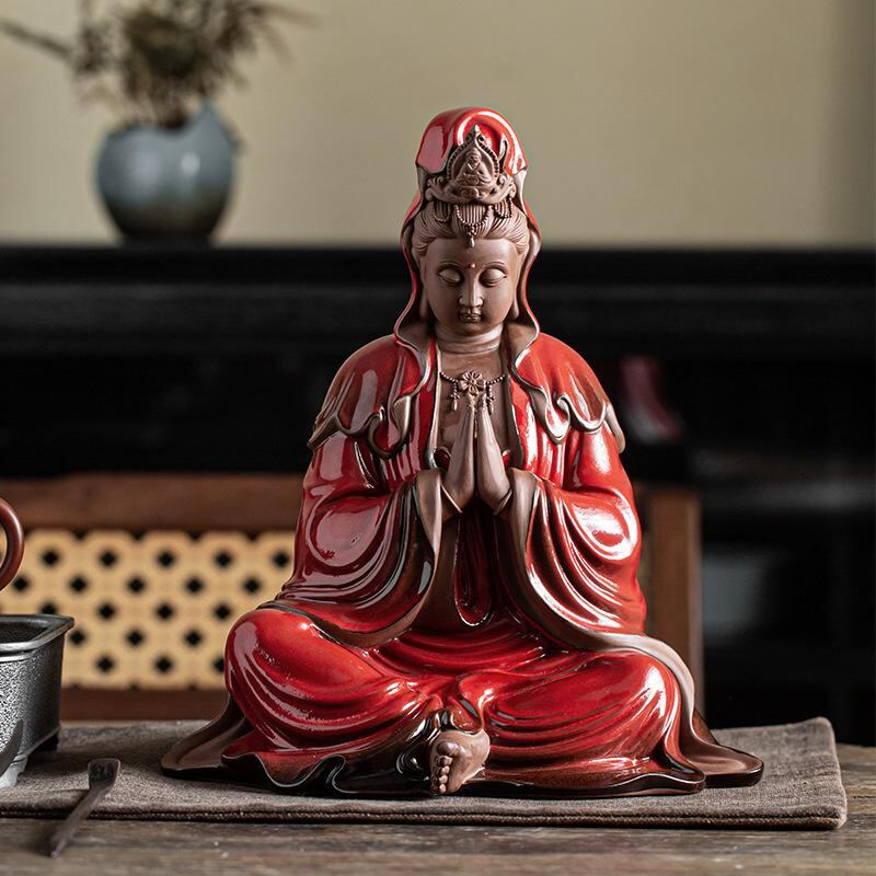 倒流香炉 観音菩薩像 仏像 置物 飾り物 オブジェ 室内用 玄関 インテリア 照明付き 間接照明 紫砂陶 陶磁器製 禅風 和風 癒し 瞑想 スピリチュアル