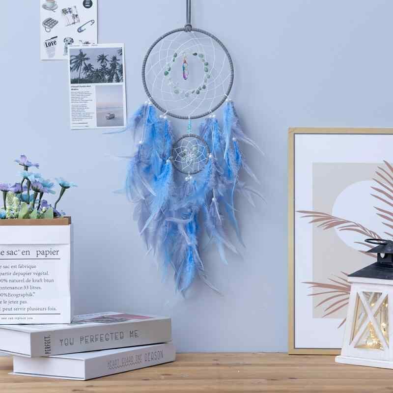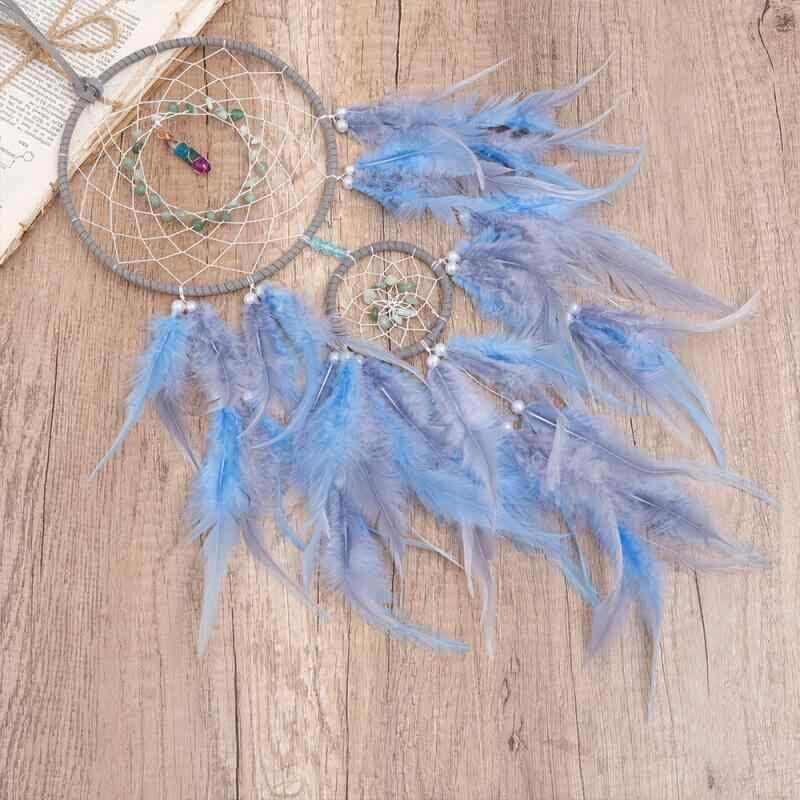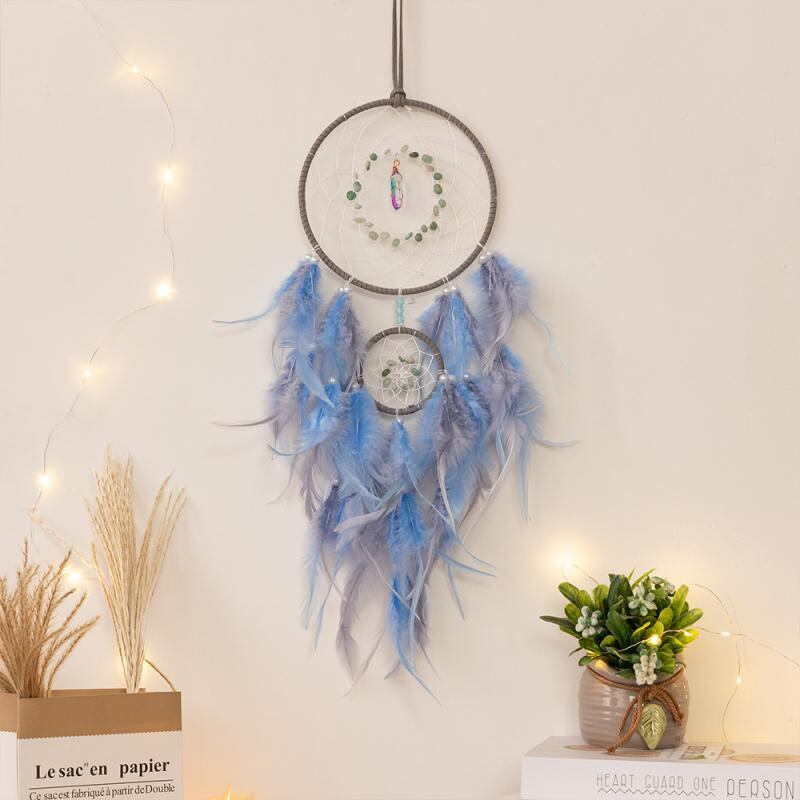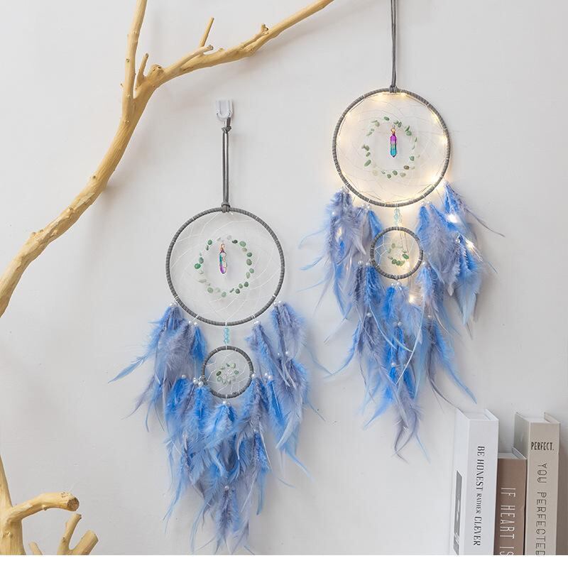 ドリームキャッチャー 子供 女の子向け 手作り DIY キット 羽根 編み込み 壁掛け ウォールデコ 風鈴 かわいい おしゃれ 子供部屋 インテリア装飾 グレーブルー 癒し
