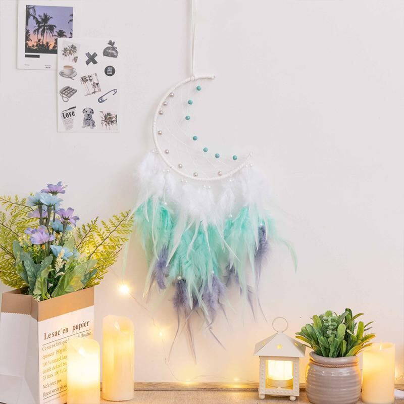 ドリームキャッチャー インディアン風 壁飾り 風鈴 インテリア おしゃれ ハンドメイド 手作り オーナメント リビング 寝室 玄関 吊り下げ装飾 羽根 フェザー お守り プレゼント ギフト