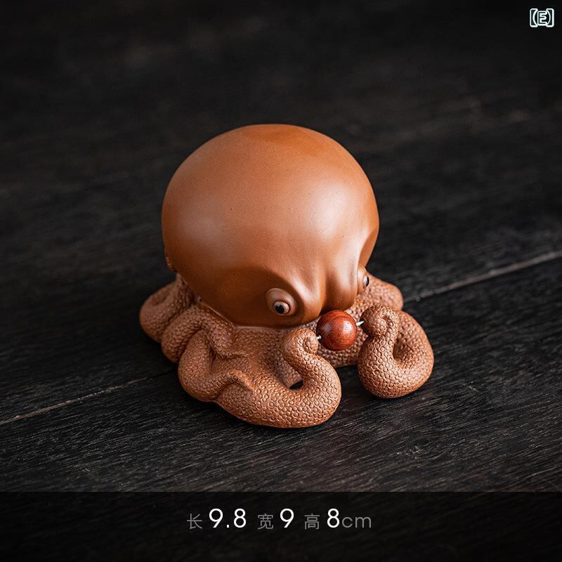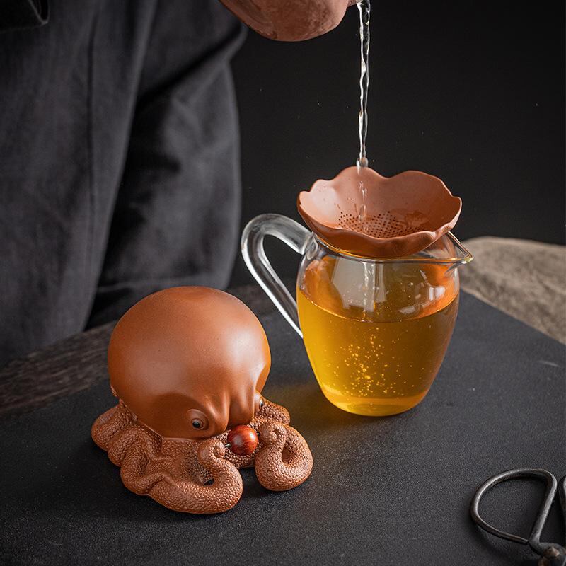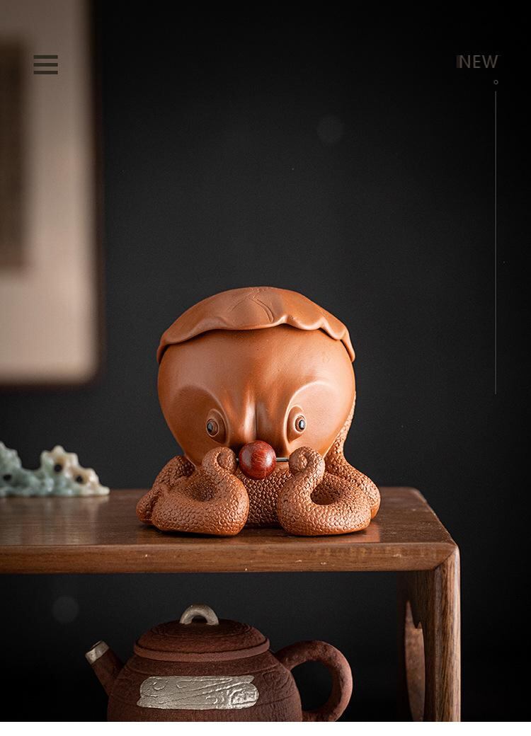 茶道 置物 紫砂 章魚 茶寵 オブジェ 茶葉フィルター 茶漉し セット 組み合わせ 功夫茶 中国茶器 アクセサリー 個性的 おしゃれ かわいい 陶器製 紫泥 朱泥