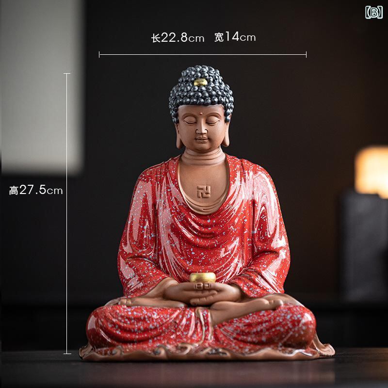 仏像 大型 陶器製 如来像 釈迦如来 中国風 禅スタイル インテリア 置物 茶室 リビング 飾り棚 オブジェ 装飾品