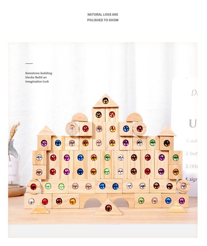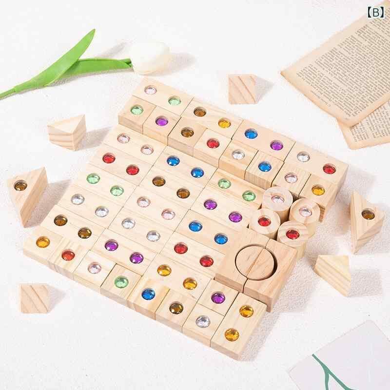 積み木 子供 50個セット アクリル ジェムブロック レインボーカラー 木製 知育玩具 早期教育 思考力 想像力 集中力 ドミノ遊び 組み立て クリエイティブ