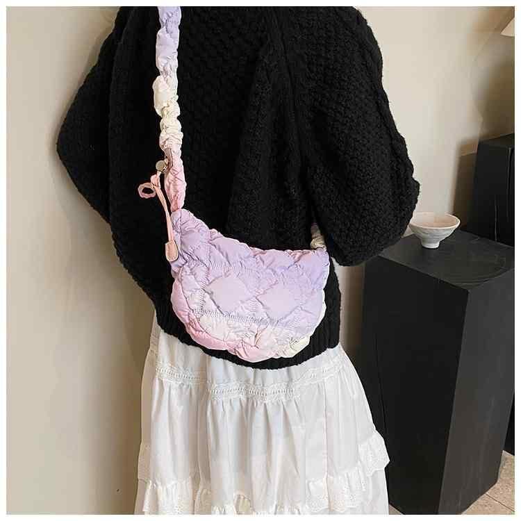 バッグ レディース レインボー ギャザー クラウドバッグ パフバッグ ワンショルダー 斜め掛け シンプル おしゃれ 韓国風 普段使い デイリーユース ストリートカジュアル もこもこ やわらか ソフト 横型 スクエア ポリエステル裏地