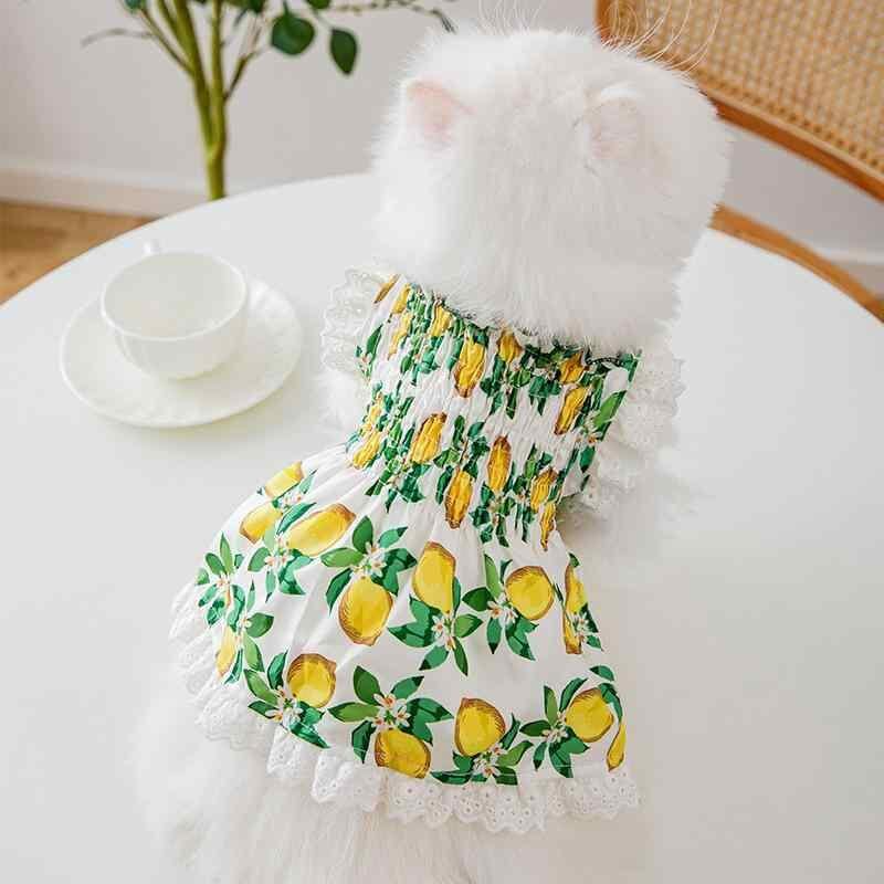 ペットウェア 犬 猫用 春夏 グリーン レモン柄 レーストリム キャミソール ワンピース かわいい 清涼感 通気性 軽量 快適 お散歩 お出かけ 普段使い ポリエステル素材 プリンセススタイル ドッグドレス