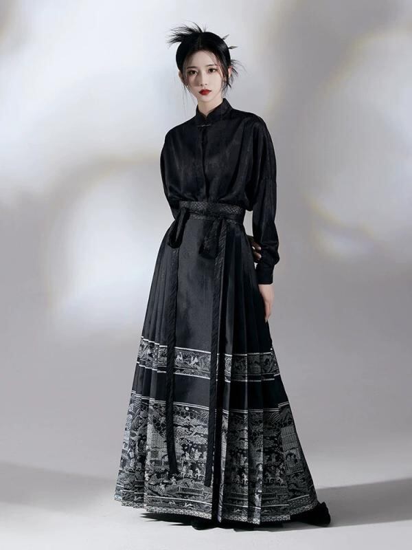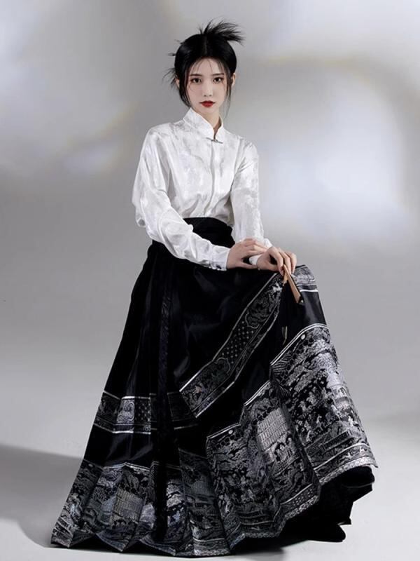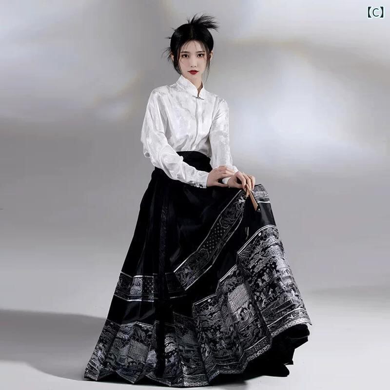 セットアップ レディース 長袖トップス 馬面スカート モダンチャイニーズスタイル 軽やか中華風 上品 エレガント 秋物 白 黒 オフィス カジュアル お出かけ