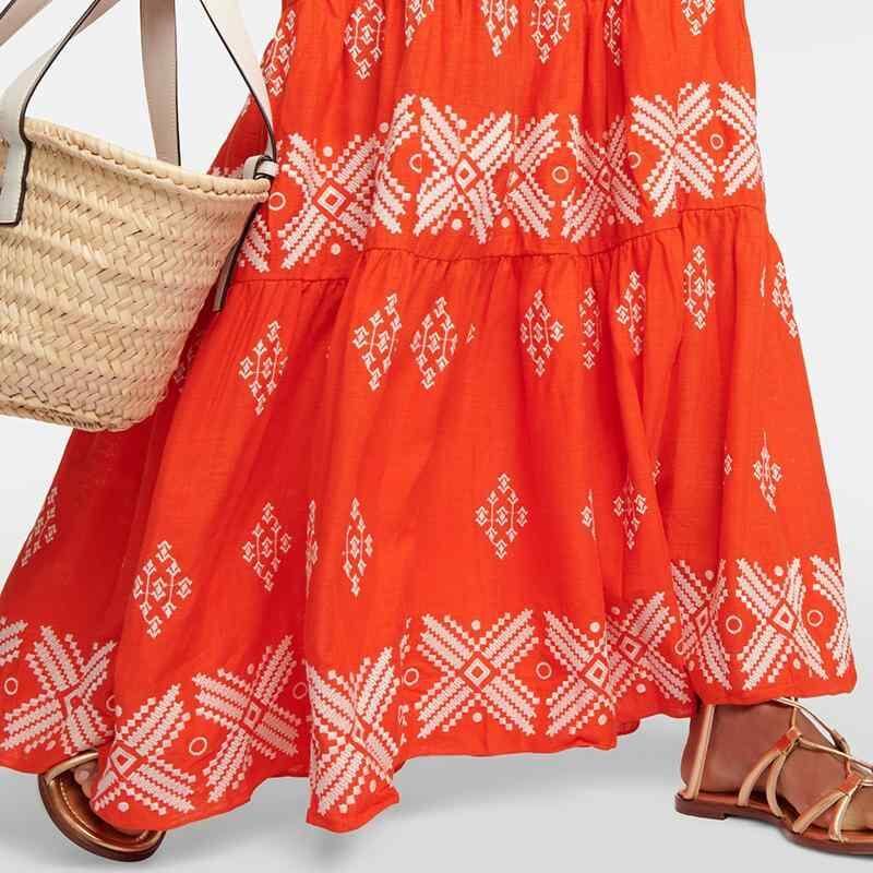 ワンピース レディース ホルターネック プリント ロング丈 ハイウエスト タイト 個性的 ポリエステル リゾート カジュアル デート ノースリーブ オレンジ 旅行