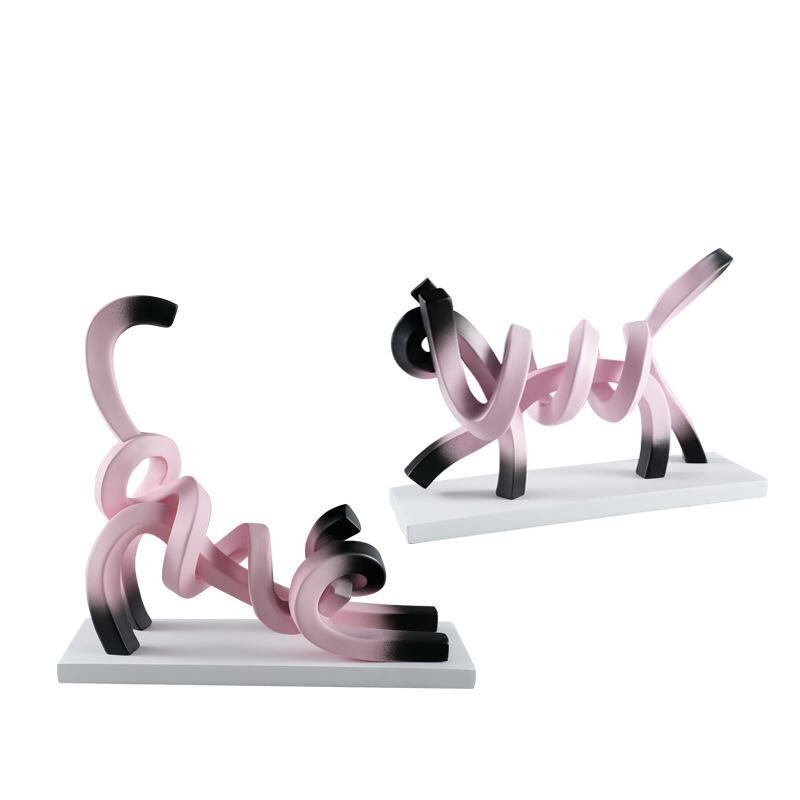 置物 ラインアート 猫 樹脂製 オブジェ 卓上飾り リビング 玄関 ワインラック モダン スタイリッシュ インテリア 高級感 白 ピンク 新築祝い プレゼント