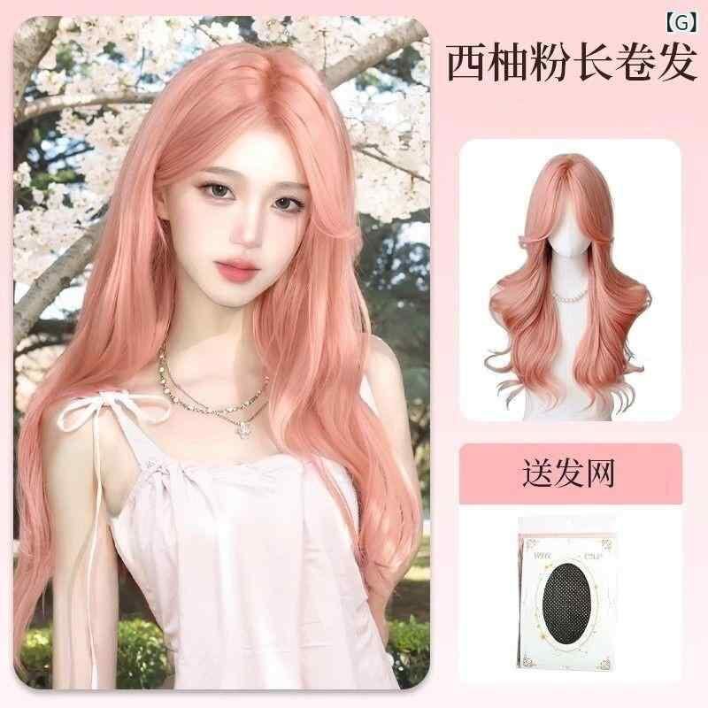 ウィッグ レディース ロング ピンク系 インフルエンサー風 自然な ストレート カール 大波ウェーブ ロリータ かわいい フルウィッグ 人工毛 前髪あり 普段使い ファッション
