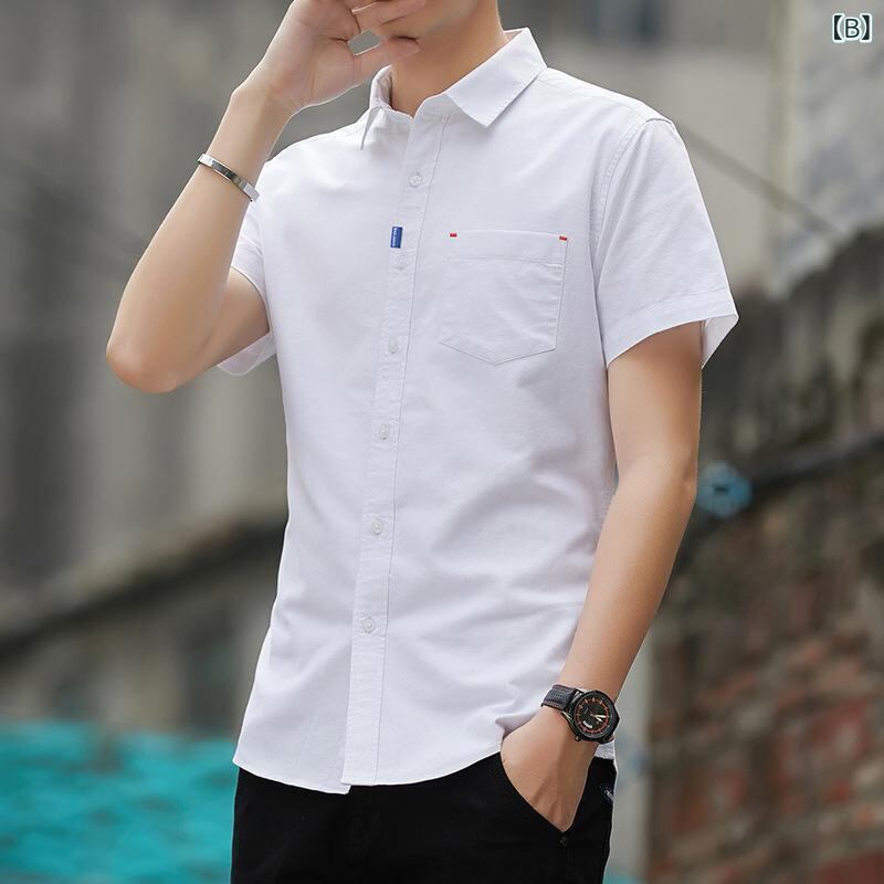 シャツ メンズ 半袖 薄手 薄地 綿100% コットン 純綿 ノーアイロン ビジネス カジュアル スリムフィット 細身 オフィスカジュアル 通勤 普段使い デイリーユース